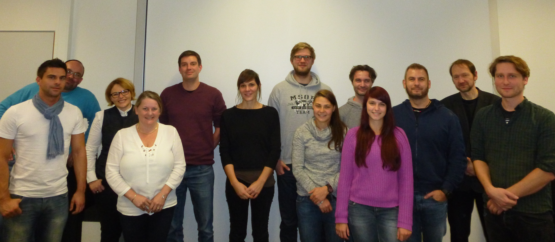 Das Foto entstand im Anschluss an eine Lehrveranstaltung bei Prof. Dr. Axel Grimm, die die Gäste gemeinsam mit Studentinnen und Studenten des Instituts besuchten.