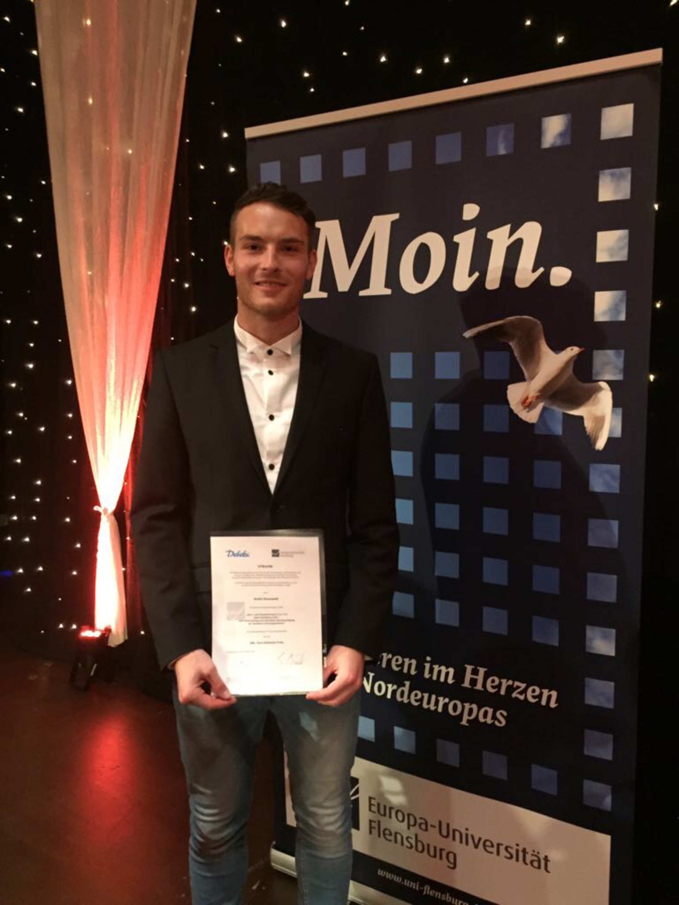 Auf der Graduiertenfeier der EUF am 20.10.2017 im Deutschen Haus wurde biat-Absolvent André Kossowski mit dem Preis für herausragende Leistungen im Lehramtsstudium, ausgelobt von der Debeka-Gruppe, ausgezeichnet.
