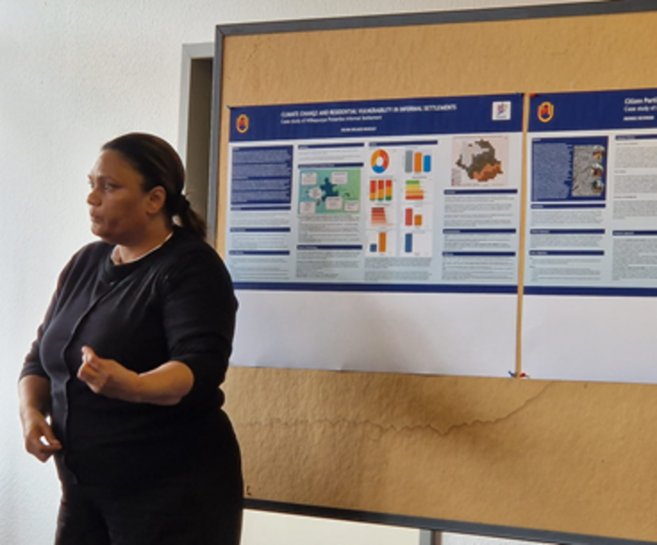 Geraldine van Rooi von der NUST erläuterte die Ergebnisse von drei ihrer Studierendengruppen, die umfangreiche Befragungen zu den Einflüssen des Klimawandels in den „informal Settlements“ in Namibia durchführten. Die Ergebnisse mit einem Stichprobenumfang von 324 befragten Haushalte sind beeindruckend. Besonders hervorzuheben ist, dass die Studierenden offenbar eine große Akzeptanz für ihr Engagement in der Community erhalten haben und so wertvolle Daten erheben konnten.