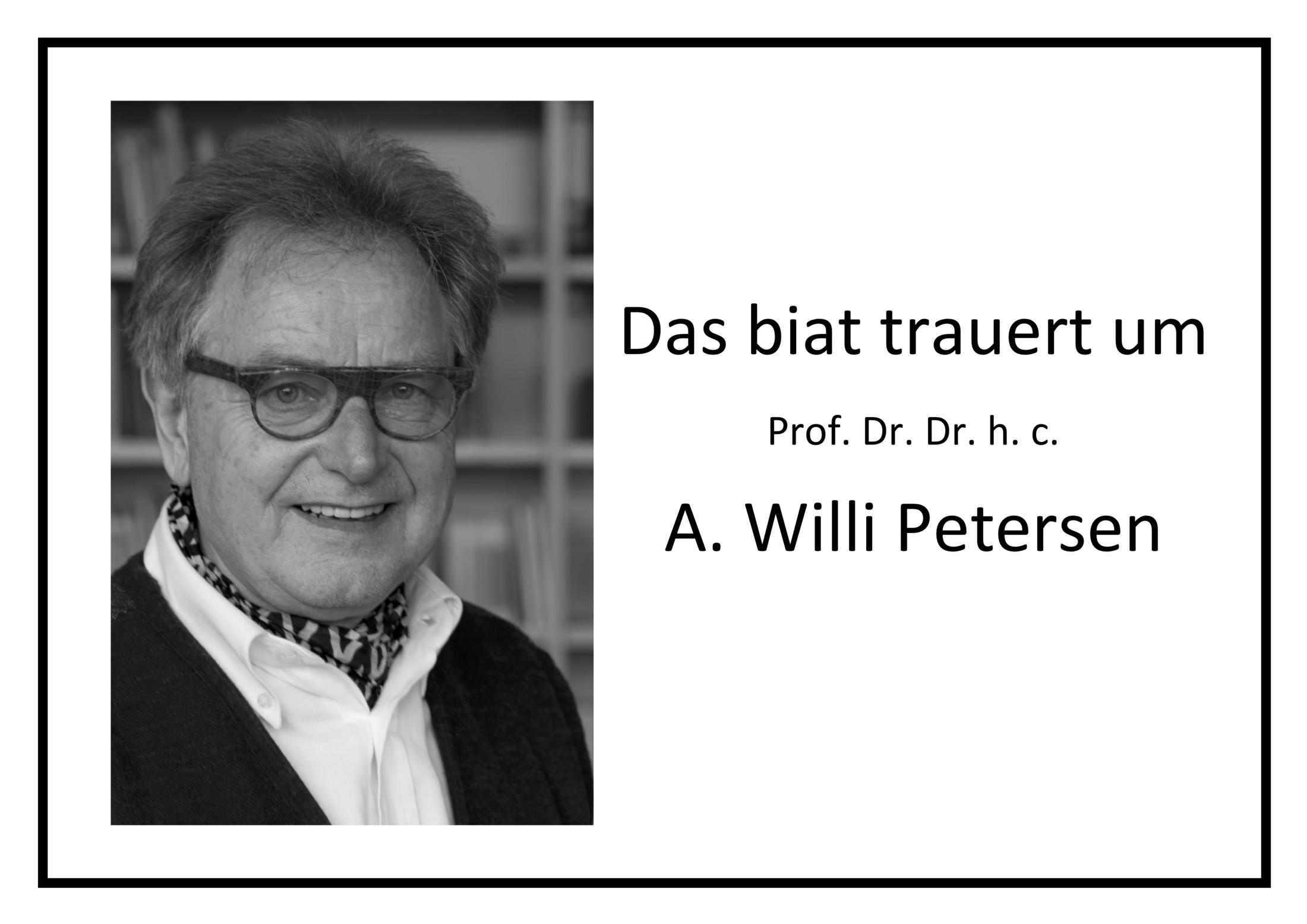 Mit großer Bestürzung haben wir vom Tod unseres langjährigen Kollegen und biat-Mitbegründer Prof. Dr. Dr. h. c. A. Willi Petersen erfahren.