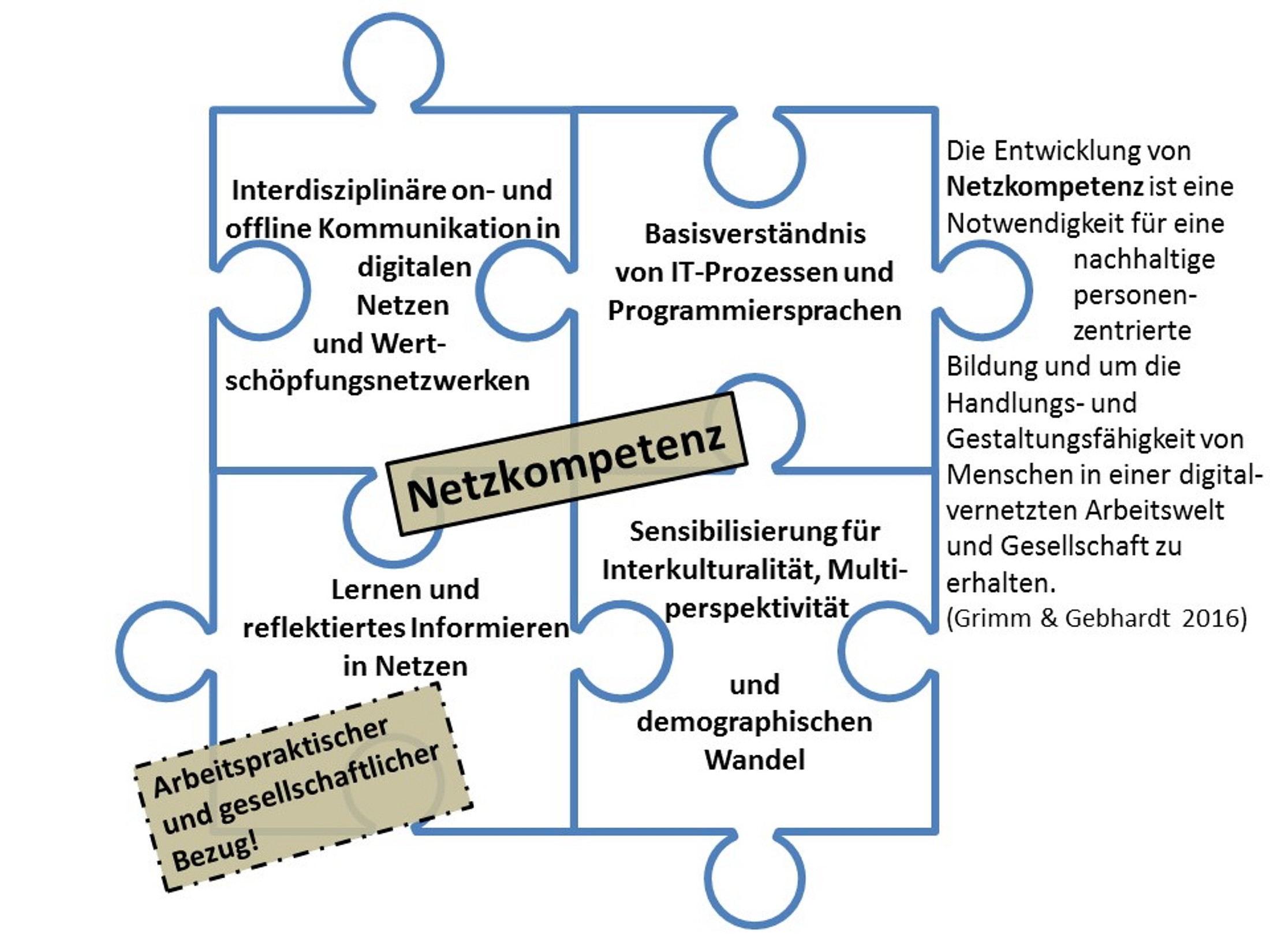 Eines der Kernelemente des Forschungsvorhabens "PROKOM 4.0 – Kompetenzmanagement für die Facharbeit in der High-Tech-Industrie" am biat ist die Konzeption, Durchführung und Evaluierung eines Lehr-Lern-Arrangements zur Entwicklung von Netzkompetenz für eine nachhaltige Handlungs- und Gestaltungsfähigkeit von Facharbeit im Kontext von Industrie 4.0 und der Zukunft der Arbeit.