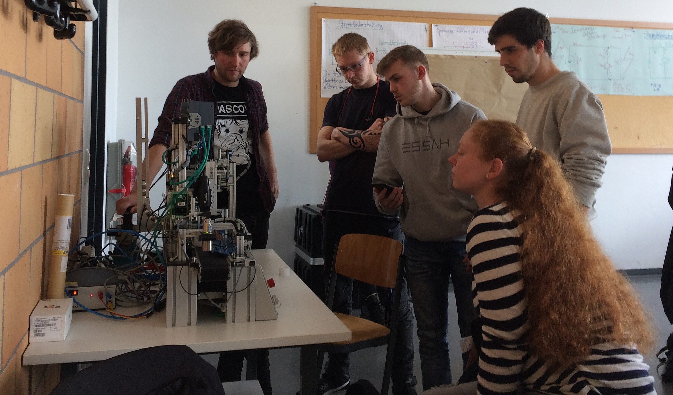 Nach intensiver Planung und Erprobung und mit der Unterstützung durch die biat-Studierenden und wissenschaftlichen Hilfskräfte Franka Heers und Jacob Hawel, brach der Wissenschaftliche Mitarbeiter Jonas Gebhardt nach Berlin auf, um vom 24.-28. April diese ganztägigen Lehr-Lern-Arrangements am Oberstufenzentrum TIEM in Berlin-Spandau durchzuführen. Dieses erfahrbare betriebs- und alltagsnahen Sensibilisierungsmaßnahme zu den zukünftigen Anforderungen von Industrie 4.0 und der digitalisierten Vernetzung in Arbeit und Gesellschaft geschah in Stationen mit abschließender kritische Diskussion. Die Gestaltung dieser Einheit baut u. a. auf Erkenntnissen aus eigenen Erhebungen in der gegenwärtigen betrieblichen Praxis und der Digitalisierung des Arbeitsalltags der Facharbeit in KMU auf.