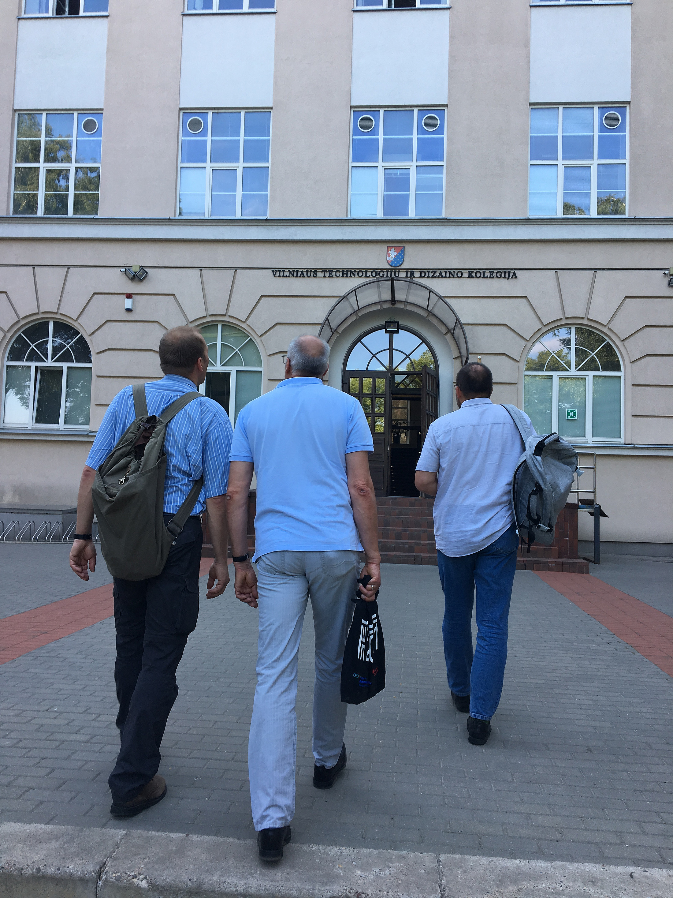 Die Projektverantwortlichen Axel Grimm und Jonas Gebhardt vom biat wurden mit den Kollegen aus Palmela Sønderborg, Flensburg, St. Pölten und Nürnberg von den litauischen Partnern, Jolanta Pileckienė, Andrius Čeponis sowie der Dekanin Dr. Gražina Strazdienė, an der VTDK-Vilniaus technologijų ir dizaino kolegija(Kolleg für Technologien und Design; https://en.vtdko.lt/)