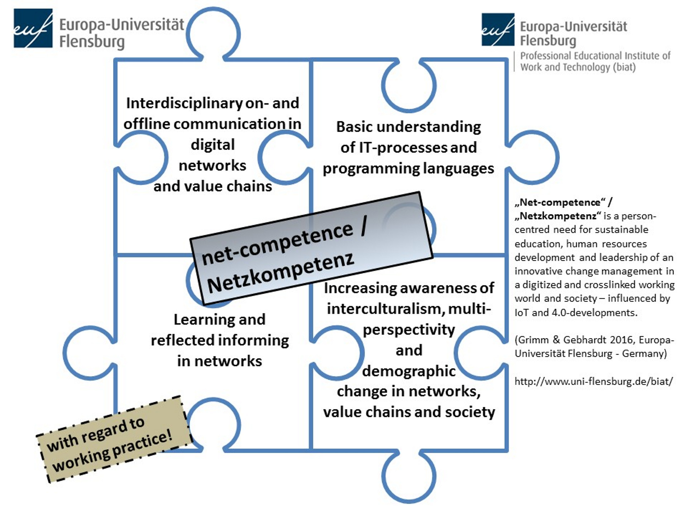 Neben dem inhaltlichen Austausch über die Konferenzthemen fand sich auch Zeit die bisherigen Ergebnisse von PROKOM 4.0 in den Panels und darüber hinaus interdisziplinär mit europäischen Stakeholdern aus Industrie, Bildung und Weiterbildung zu diskutieren und zu erweitern. In diesem europäischen Rahmen bestätigte sich das weiter entwickelte Konstrukt der "Netzkompetenz" als eine dienliche Konsequenz für die zukunftsfähige Arbeits- und Gestaltungsfähigkeit von Arbeitnehmern, im Kontext von Digitalisierung sowie gewerks- und grenzüberschreitender off- und online Kommunikation in internationalen Netzwerken.