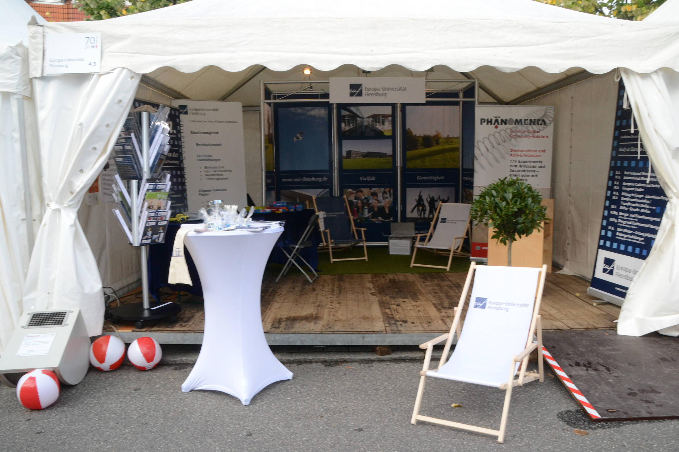 Am ersten Oktober-Wochenende fanden in Eutin Feierlichkeiten aus Anlass des 70. Geburtstages des Landes Schleswig-Holstein statt. Auch das biat war auf einem Ausstellungsstand vertreten, an dem für den Studiengang "Master of Vocational Education/Lehramt an beruflichen Schulen" geworben wurde. Freundlicherweise hatte sich Sabine Große-Aust, neue Marketingmitarbeiterin der Europa-Universität, bereiterklärt, den Stand der EUF mit Ausstellungsstücken auch des biat zu versehen und dort für den Studiengang zu werben.