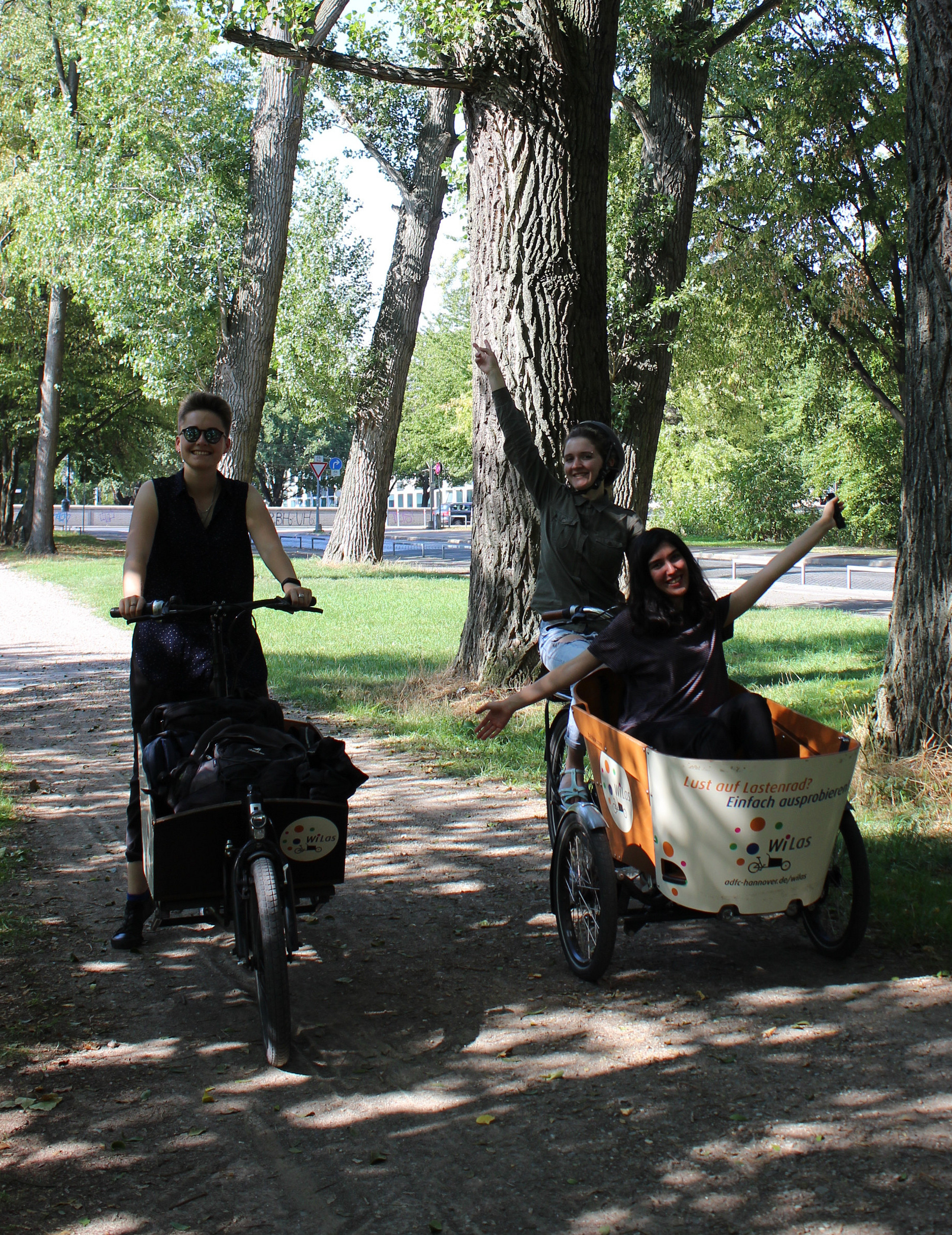 In Hannover fand im Rahmen des Internationalen Sommercamps u.a. eine Exkursion zum Thema Mobilität und Urban Gardening statt (Organisation & Durchführung: Stephanie Stiegel). Für die Exkursion wurden zwei WiLas (Lastenräder) vom ADFC Hannover zur Verfügung gestellt. Vom ADFC-Büro aus führte uns die Stadttour zunächst für einen kurzen Stopp zum neuen Rathaus und dann weiter zur Ihme, um ein entspanntes Fahren fern des Autoverkehrs zu erleben. Das Ziel "Pagalino", der Palettengarten in Hannover Linden-Nord, wurde gut gelaunt erreicht.