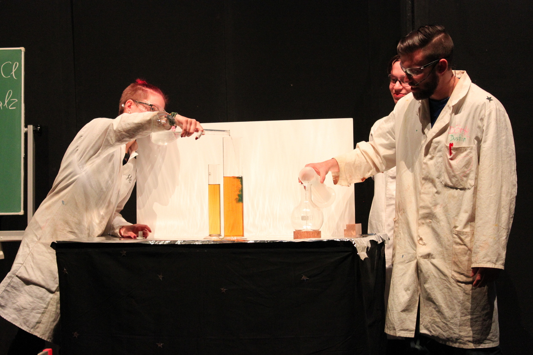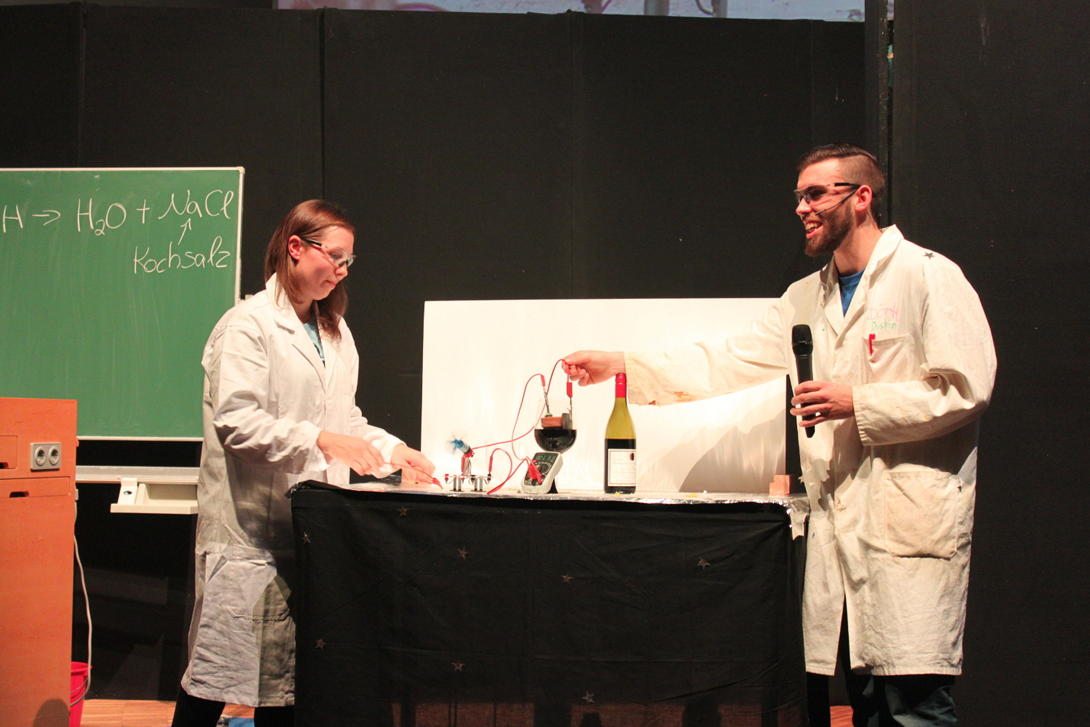 Am 13.03.2016 war der große Hörsaal im Audimax gut gefüllt mit Kindern aus Flensburger Grundschulen. Wenn Chemiker Experimentalvorträge halten wird es laut und gefährlich, genau das was die Schüler erwartet haben.