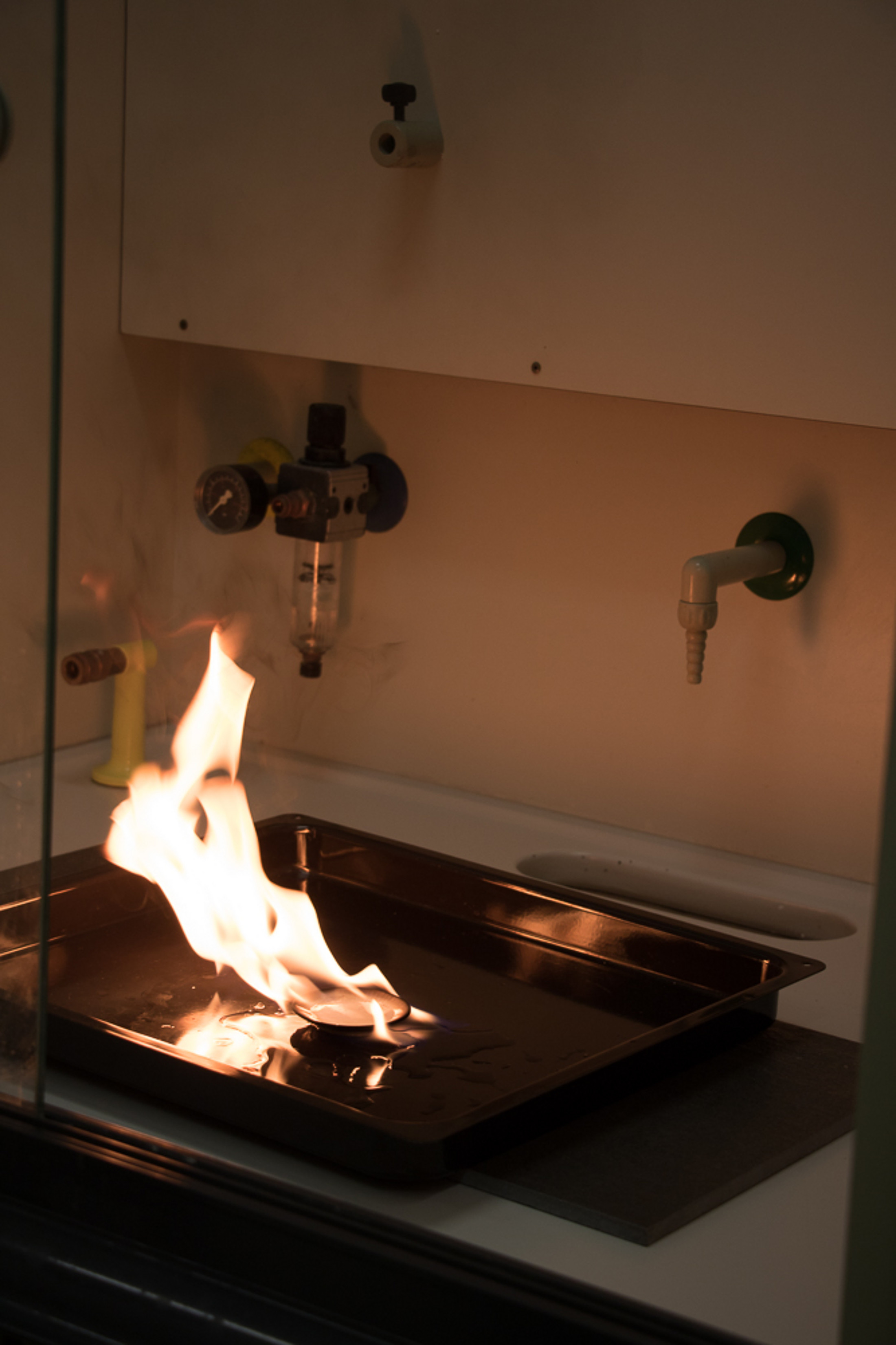 Mit großer Begeisterung der Teilnehmenden führten die Mitarbeitenden der Abteilung Chemie und ihre Didaktik am 27. März die alljährliche Fortbildung für die Freiwillige Feuerwehr Jürgensby durch. Dieses Jahr wurde auf Wunsch der Teilnehmenden die Fortbildung unter dem großen Thema "Mögliche Einsätze" durchgeführt. Mehrere Experimente und Versuchsinhalte wurden speziell von den Teilnehmenden gewünscht, wie z.B. einem Versuch zum "Boil-Over". In diesem Versuch wird gezeigt, dass Wasser als Löschmittel nicht immer geeignet ist: eine brennende Substanz mit einer geringen Dichte wird durch eingeleitetes Wasser aus einer Schale verdrängt und brennt außerhalb dieser weiter. Es folgten zudem Versuche zu Haushaltschemikalien, von denen nicht unbedingt vermutet wird, dass hiervon Gefahren ausgehen können. So kann beispielsweise beim zusammengeben von Chlorreiniger und Essigessenz Chlorgas entstehen. Bei entsprechenden Mengen und Konzentrationen kann dieses dann für den Menschen gefährlich werden. Weiterhin wurde eine Station zu Explosionen angeboten, die jährlich mit großer Begeisterung aufgenommen wird. Hier wurde u.a. die Explosion von Wasserstoff in einer Dose demonstriert.