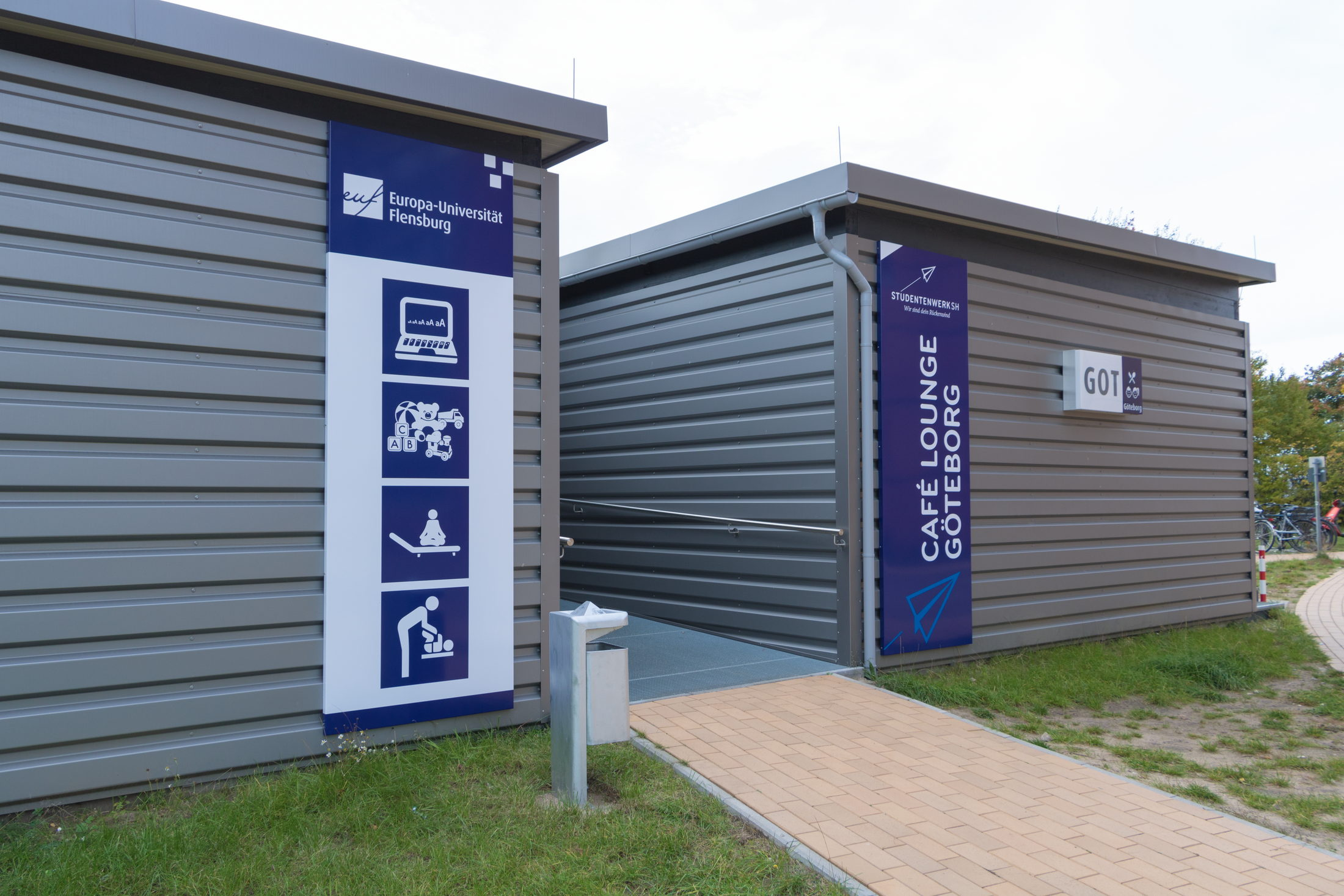 Der Container 12.3 der Hochschule beinhaltet das Jackstädt-Zentrum Flensburg und International Relations.