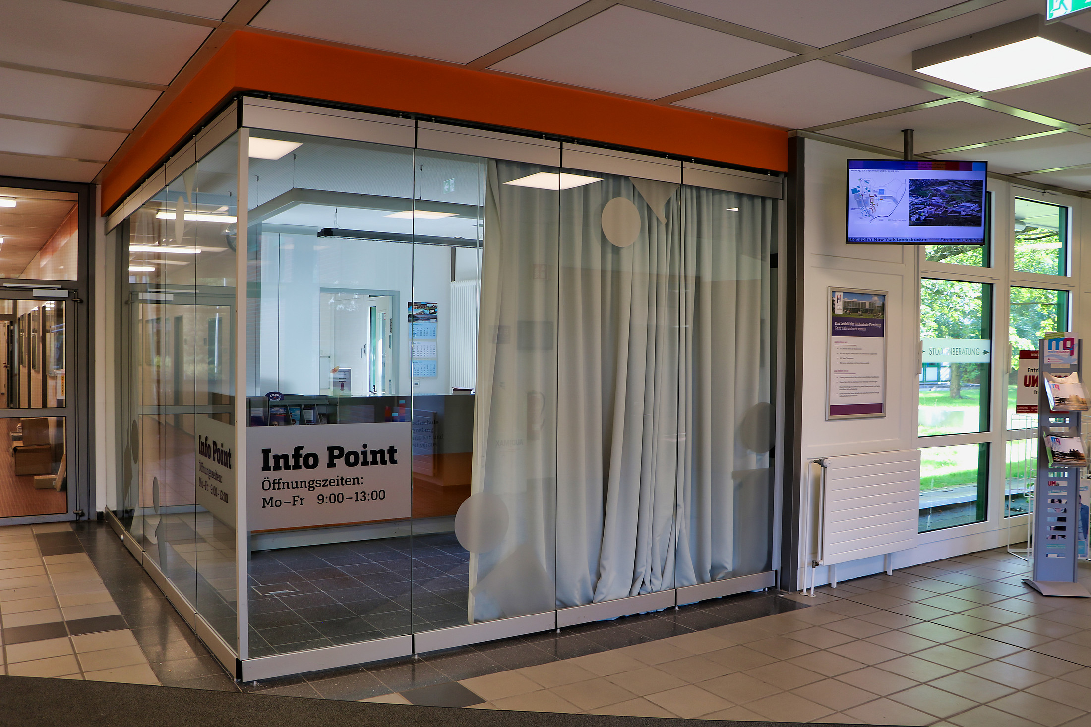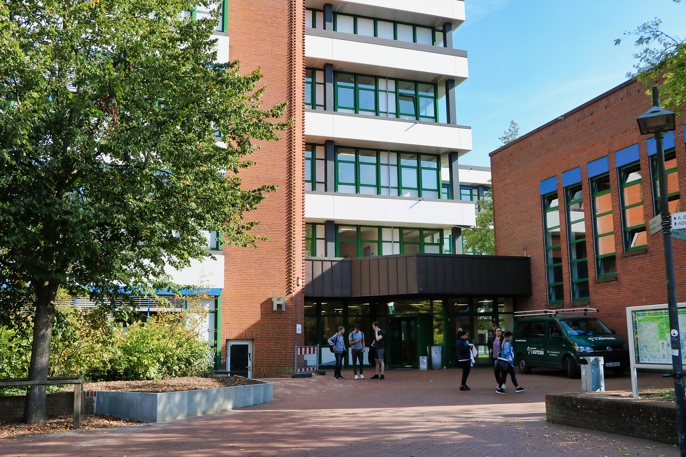 Das Gebäude H der Hochschule beinhaltet unter anderem den Info-Point und das Präsidium.