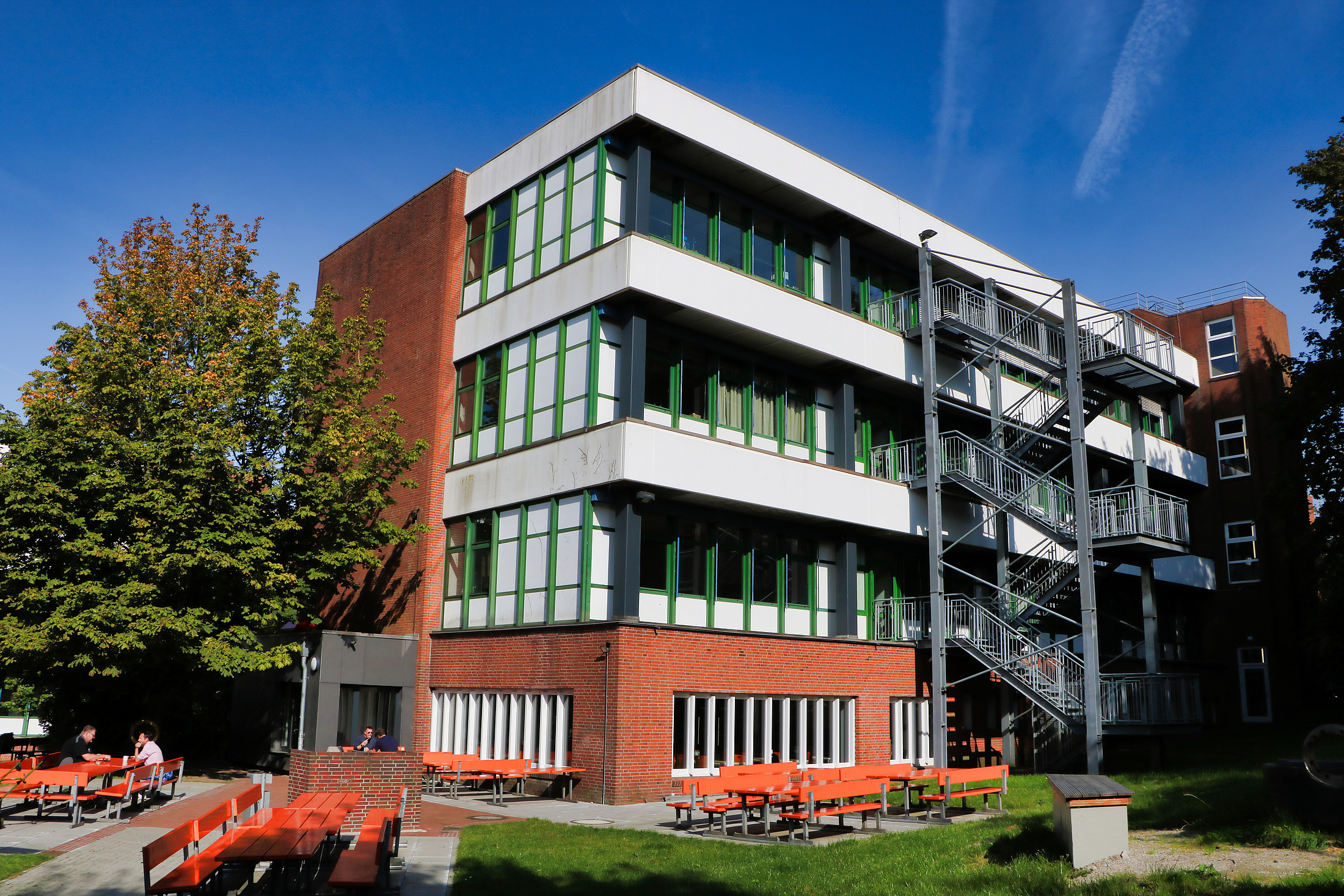 Der Container 15.2 der Hochschule beinhaltet die Seefahrtschule Flensburg.