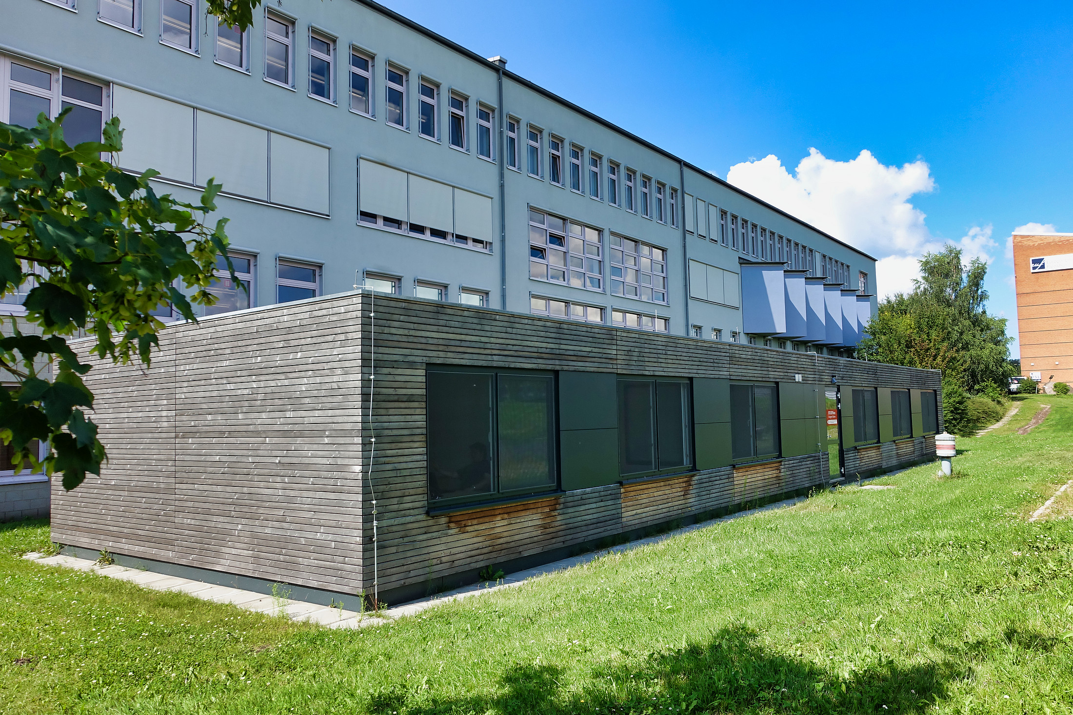 Der Container 11 der Hochschule beinhaltet das Gebäudemanagement sowie den Fachbereich Wissens- und Technologietransfer.