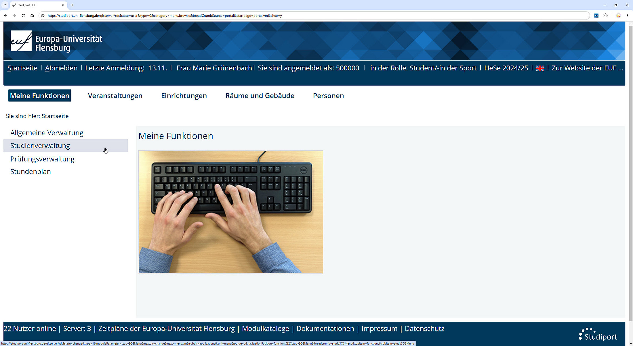 The initial building blocks of the HIS campus management system date back to the 1990s. They cover many areas of campus management, including student affairs, staff, teaching, rooms, and buildings at Flensburg. While Studiport was introduced later as a web interface, it is based on the technical standards of the early 2000s.
