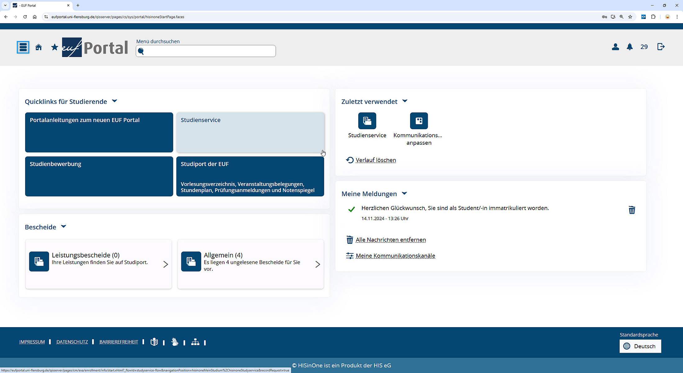 A few years ago, when the old systems began showing signs of wear and tear, the university decided to introduce the newest software generation, called "HISinOne." At our university, this web interface is called the "EUF Portal."