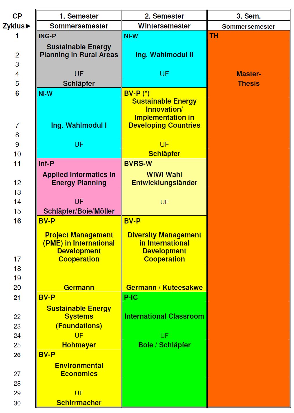 The applicable study plans for both concentrations of the program can be found in the appendix of the examination regulations under A.1.2 for industrialized countries and A.2.2 for developing countries.