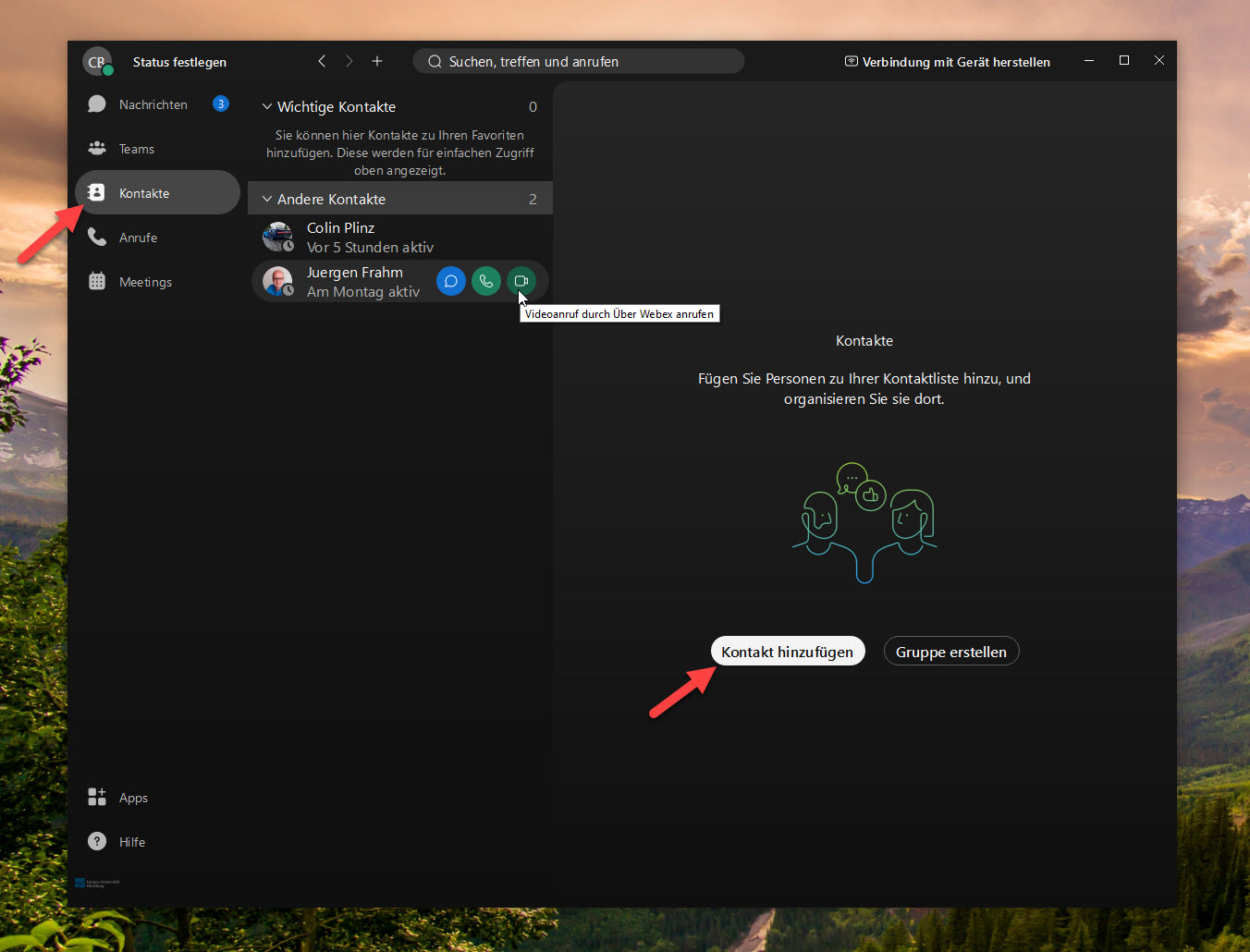 Darstellung des Persönlichen Raumes in der Webex-Anwendung.