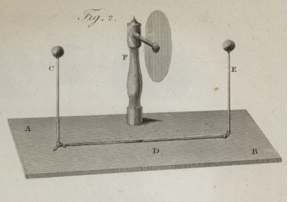 Johann Weber's electricity doubler In 1791, Joseph Weber, a physics professor from Dillingen, described what he called an electricity doubler. This device consists of three cardboard discs covered wit
