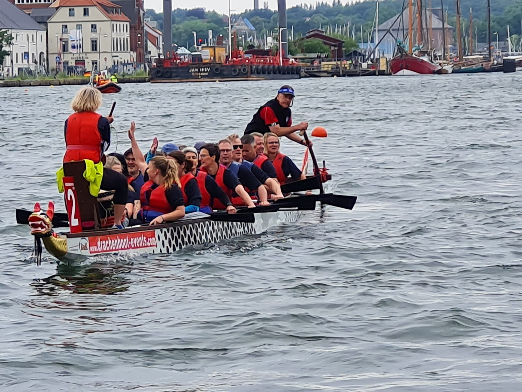 Action also took place on the water: in July 2025, after a ten-year break, the Flensburg Dragon Boat Race (“Drachenbootrennen”) made its comeback. Nineteen EUF members took to the water, forming the “EUF CAMPUSFlotte.” With dedicated training sessions, the team honed their technique and spirit, to prepare for the big day. Facing off against local organizations, clubs, and businesses from Flensburg and its surrounding area, the team finished 15th out of 52 teams with an impressive time of 1:10 minutes. Proceeds from the event went to support regional social projects. With the traditional race call: “Are you ready? Attention! Go!”, students, staff, and even the university president Christiane Hipp paddled toward the harbor's edge with full enthusiasm.