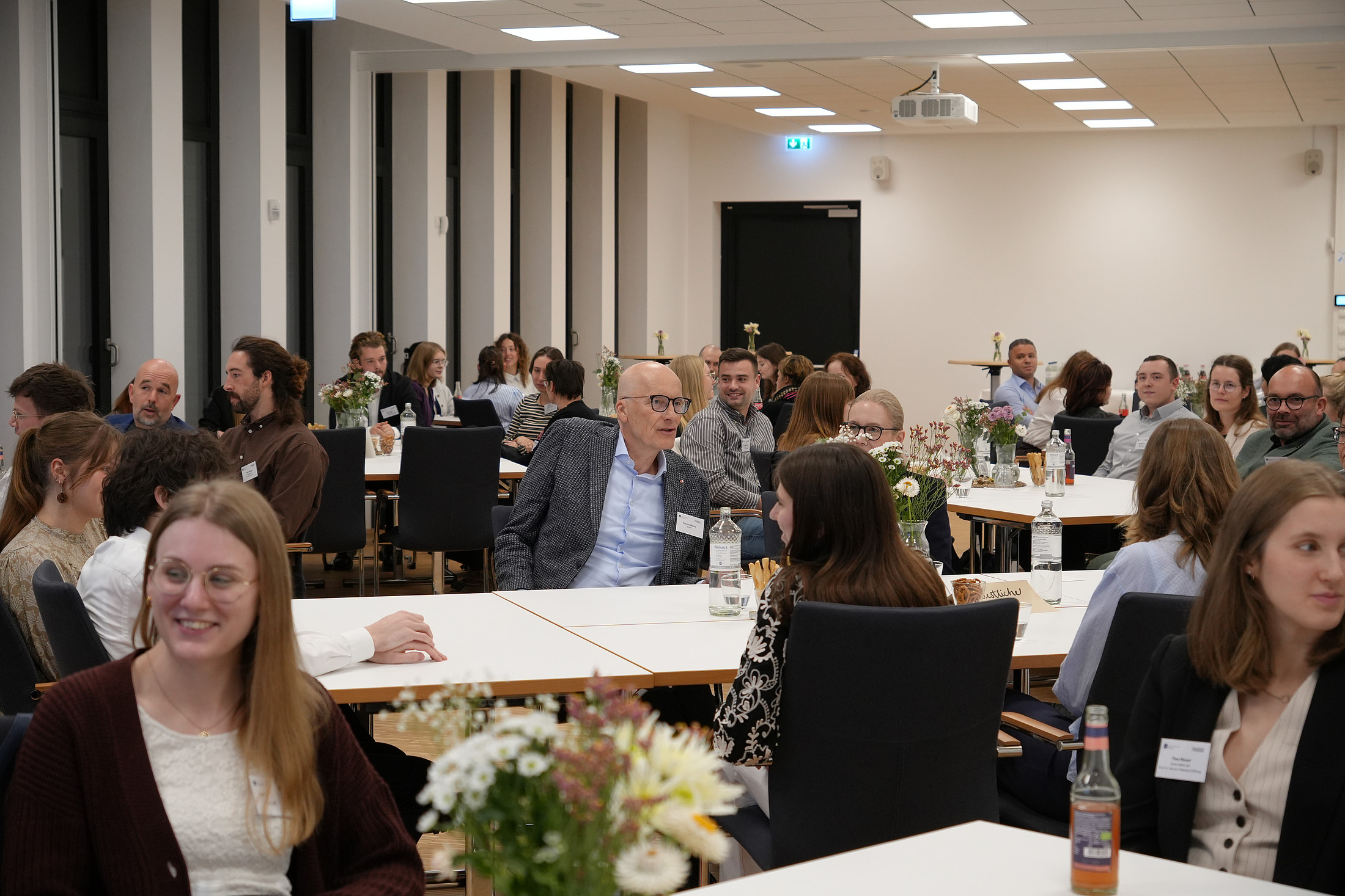 During the award ceremony, scholarship recipients had the opportunity to chat with sponsors at group tables. New this year: students introduced themselves in short videos and answered the question of how the Deutschlandstipendium enables them to take on responsibility.