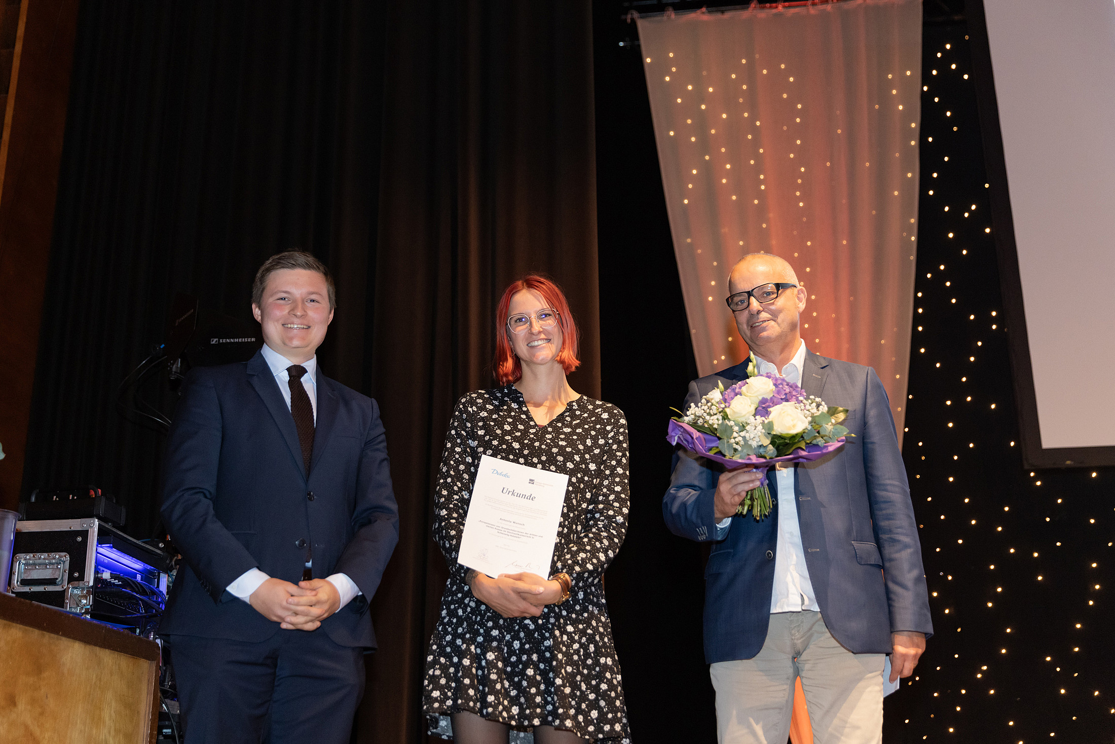 During the ceremony, Maja Fröhlich (vocational education teaching) received the award for exemplary implementation of the university’s mission statement, sponsored by the Europa-Universität Flensburg. The Debeka Group award for outstanding achievement in teacher education went to Antonia Wunsch (primary education).