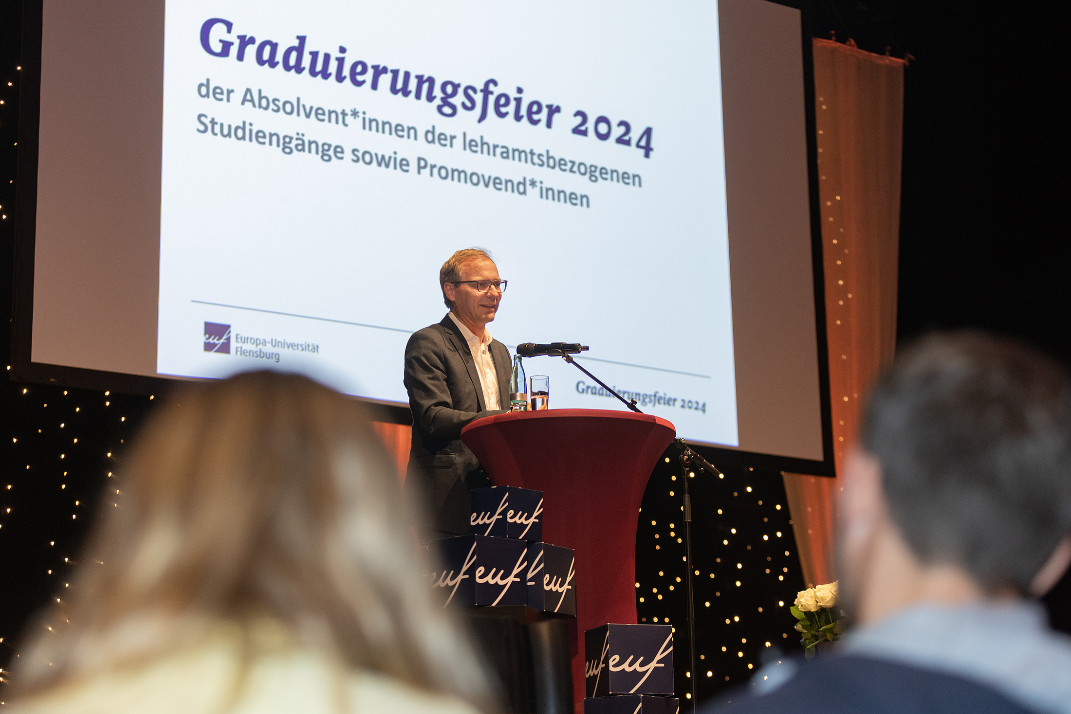 Speaking on behalf of all graduates, Jana Vervoort and Darleen Thomas, both special education majors, expressed their awareness of the influence teachers have: "No matter our field of study, we all have the opportunity in our future careers to shape young lives and impact their future." Reflecting on their time at EUF, they recalled parties at Deutsches Haus, the persistent Flensburg rain, and the many gray computer screens and broken microphones they encountered—a nod to the unique challenges posed by the pandemic. Their successes were made possible, they said, "thanks to the countless committed people who enabled teaching and knowledge-building during this special time."