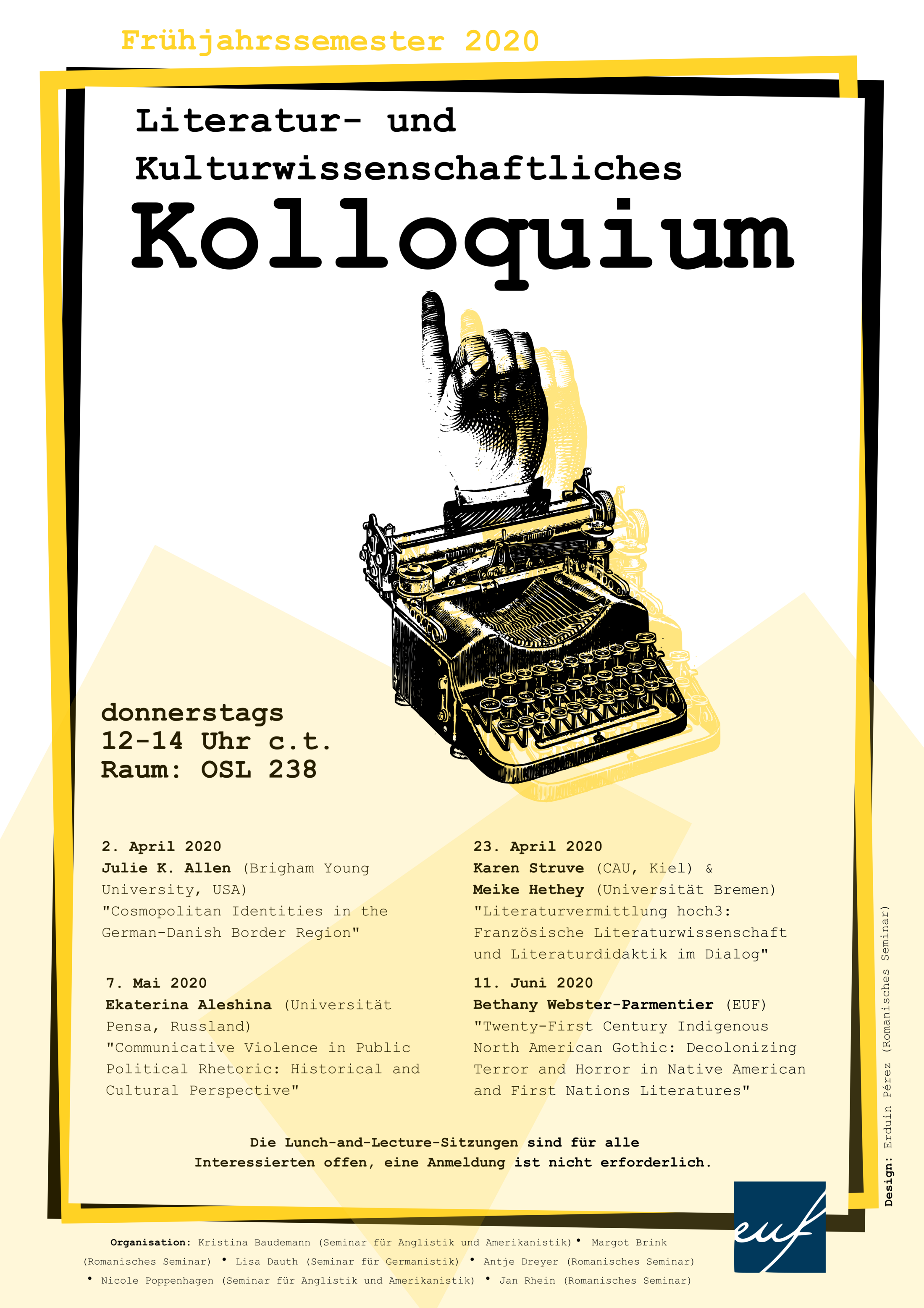The Literature and Cultural Studies Colloquium is a semester-long lecture and discussion series. Unless otherwise noted, lectures are held in hybrid format (online/in person).