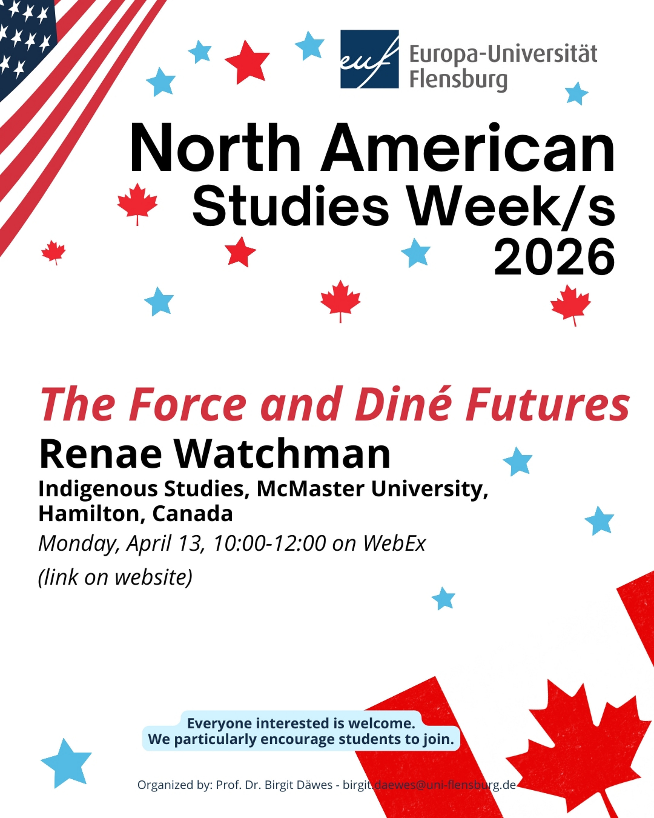 As the “first” Indigenous Nation on Turtle Island to dub Star Wars: A New Hope into the Navajo language, Sǫ́’tah Anaa’: Siih Náhásdlįį’ qualifies as another situational form of “First Contact.” The Lucas blockbuster immediately resonated with Diné (Navajo) people upon its release in 1977. The continued Star Wars fanfare has iconic artistic contributions by Diné artist Ryan Singer, whose work also depicts “Contact and Conflict” in very Indigenous (Diné-specific) ways. His Diné aesthetic reflects a “Diné Force” that harmonizes worlds beyond the one we all currently share. In a similar vein, Diné filmmaker Nanobah Becker’s The 6th World: An Origin Story imagines Diné Futures built upon ancient Diné epistemologies and sustenance. In this talk, I will introduce how traditional stories and teachings intersect with popular culture to create meaning for the worlding of Diné beyond the Fifth World. In the epic oeuvre of Diné origin stories, there are a series of worlds from which we emerge: The First World to the Second World to the Third World to the Fourth World, and finally in contemporary times, we find ourselves in the Fifth World (or the Glittering World). To imagine Diné lives, stories, and presence in a world beyond the Fifth is to normalize and expect vibrant Diné futures.