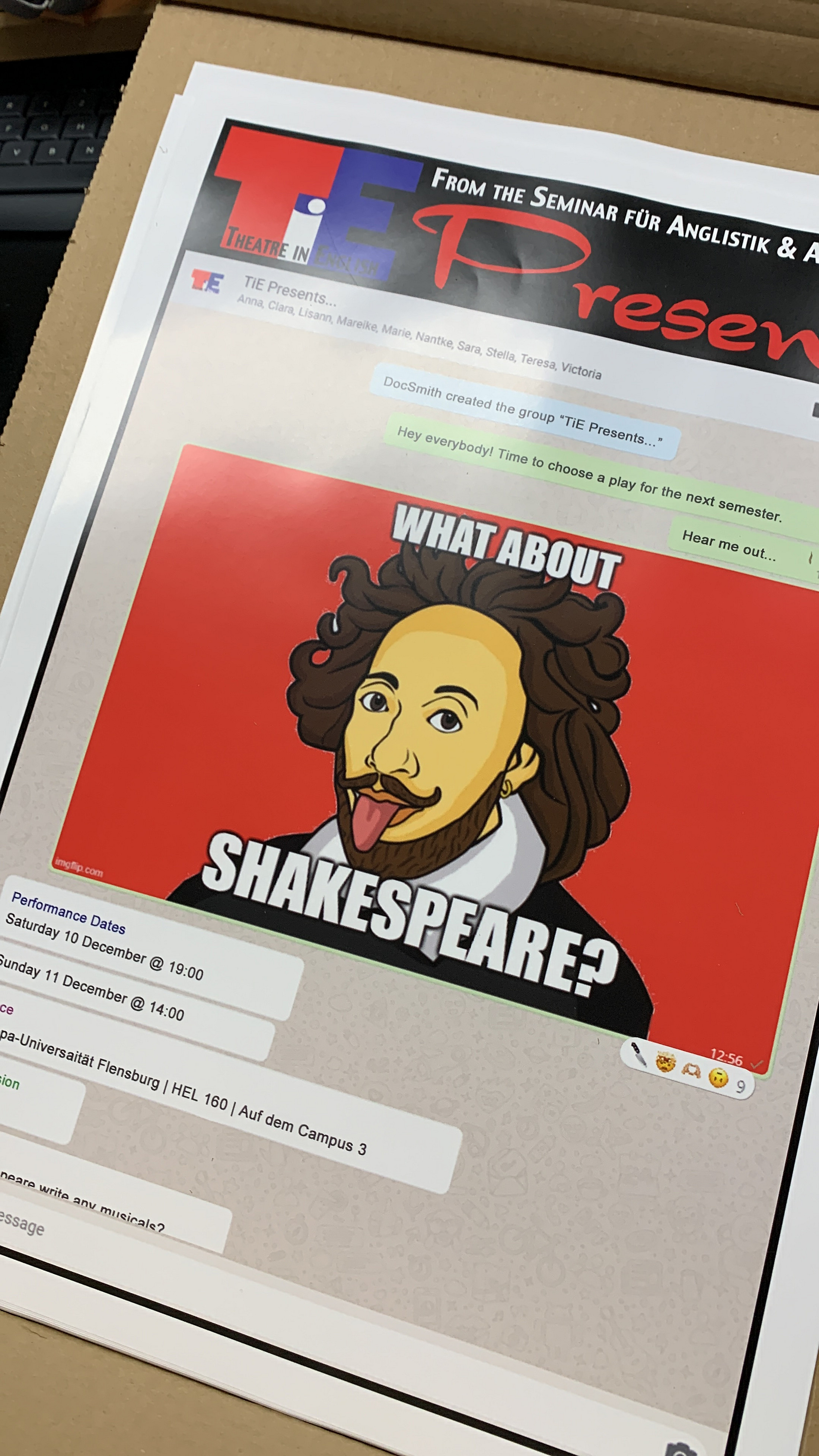 This TiE Production is offered as part of the Seminar for English and American Studies.