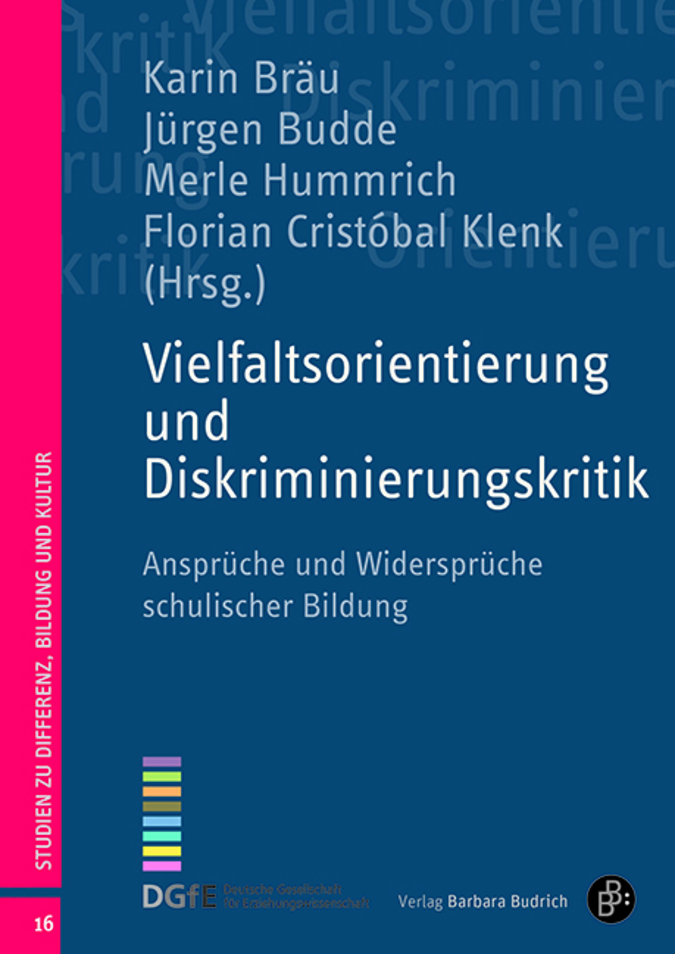 Bräu, Karin; Budde, Jürgen; Hummrich, Merle; Klenk, Florian Cristobal (Hg.) (2024): Vielfaltsorientierung und Diskriminierungskritik. Ansprüche und Widersprüche schulischer Bildung. Leverkusen: Verlag Barbara Budrich (Studien zu Differenz, Bildung und Kultur, 16). OPEN ACCESS