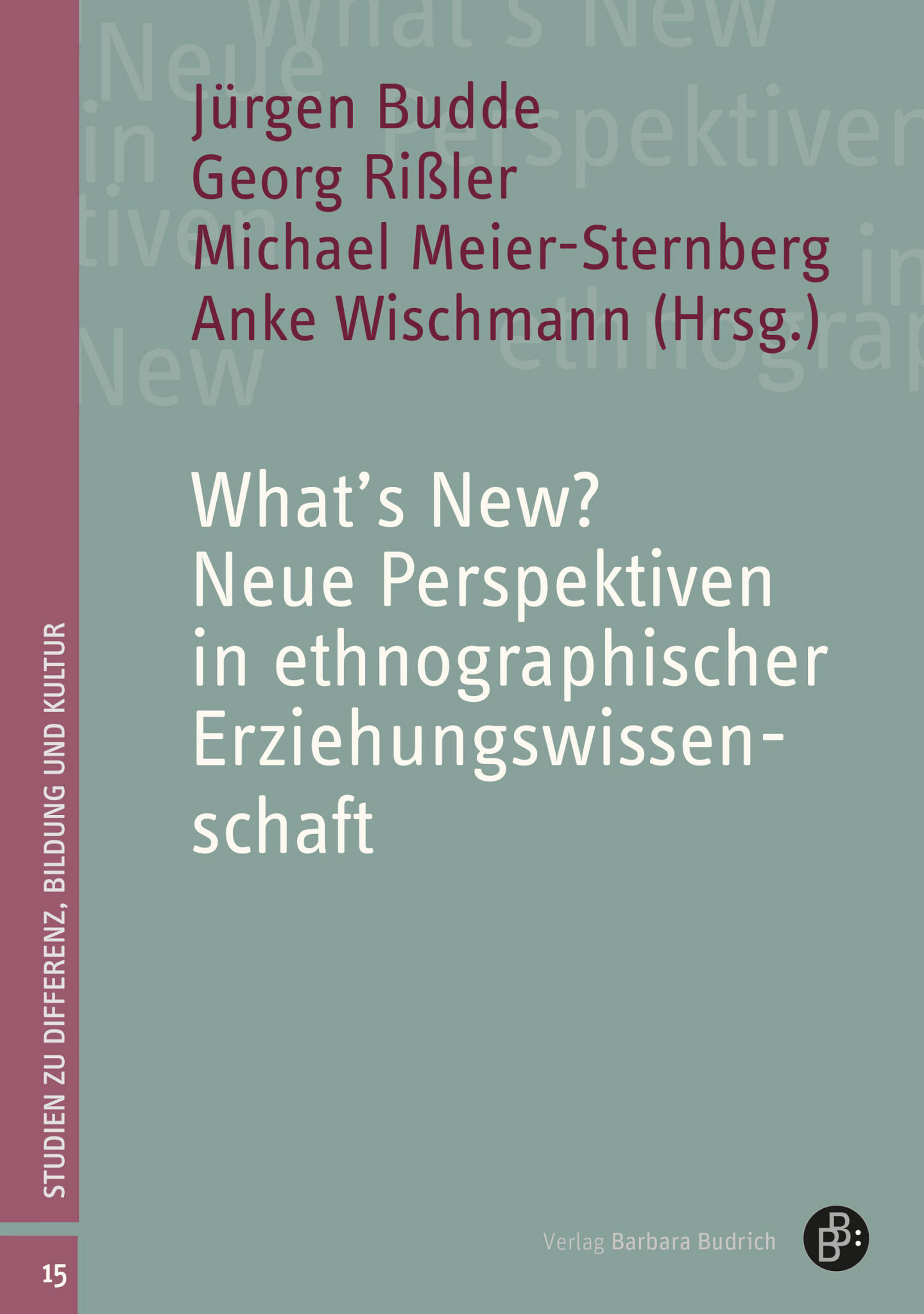 Budde, Jürgen; Rißler, Georg; Meier-Sternberg, Michael; Wischmann, Anke (Hg.) (2024): What's New? Neue Perspektiven in ethnographischer Erziehungswissenschaft. Opladen: Verlag Barbara Budrich (Studien zu Differenz, Bildung und Kultur, 15).