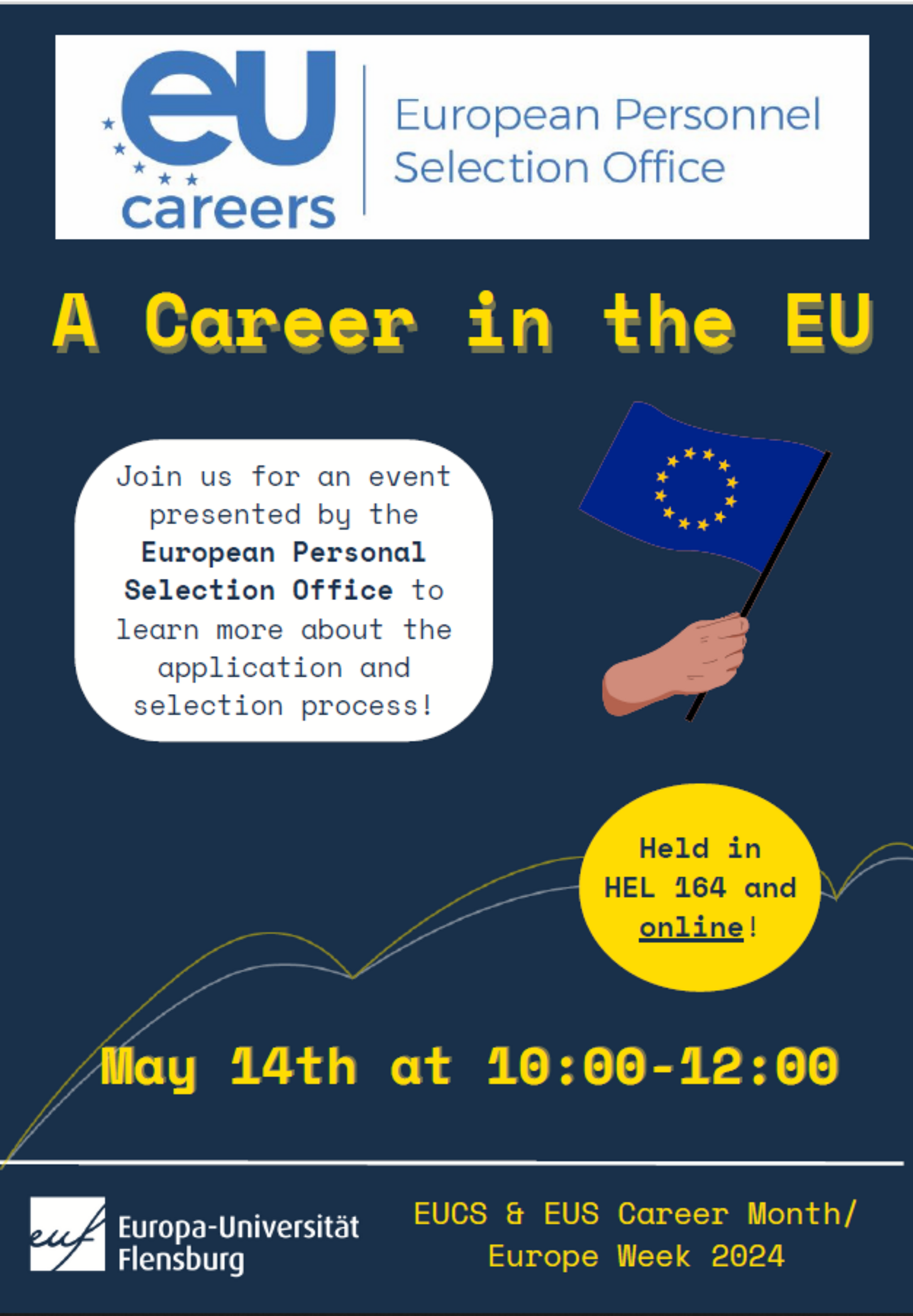 EU Careers: To finish off our career month, a representative from EPSO Careers (European Personnel Selection Office) will be presenting the possibilities to work or do an internship in the EU institutions on May 14th at 10:00 in EHL 164. If you are considering a career in the EU institutions, this meeting is a must for you, as you will hear all about how to get a job or an internship in the EU and have all of your questions answered.