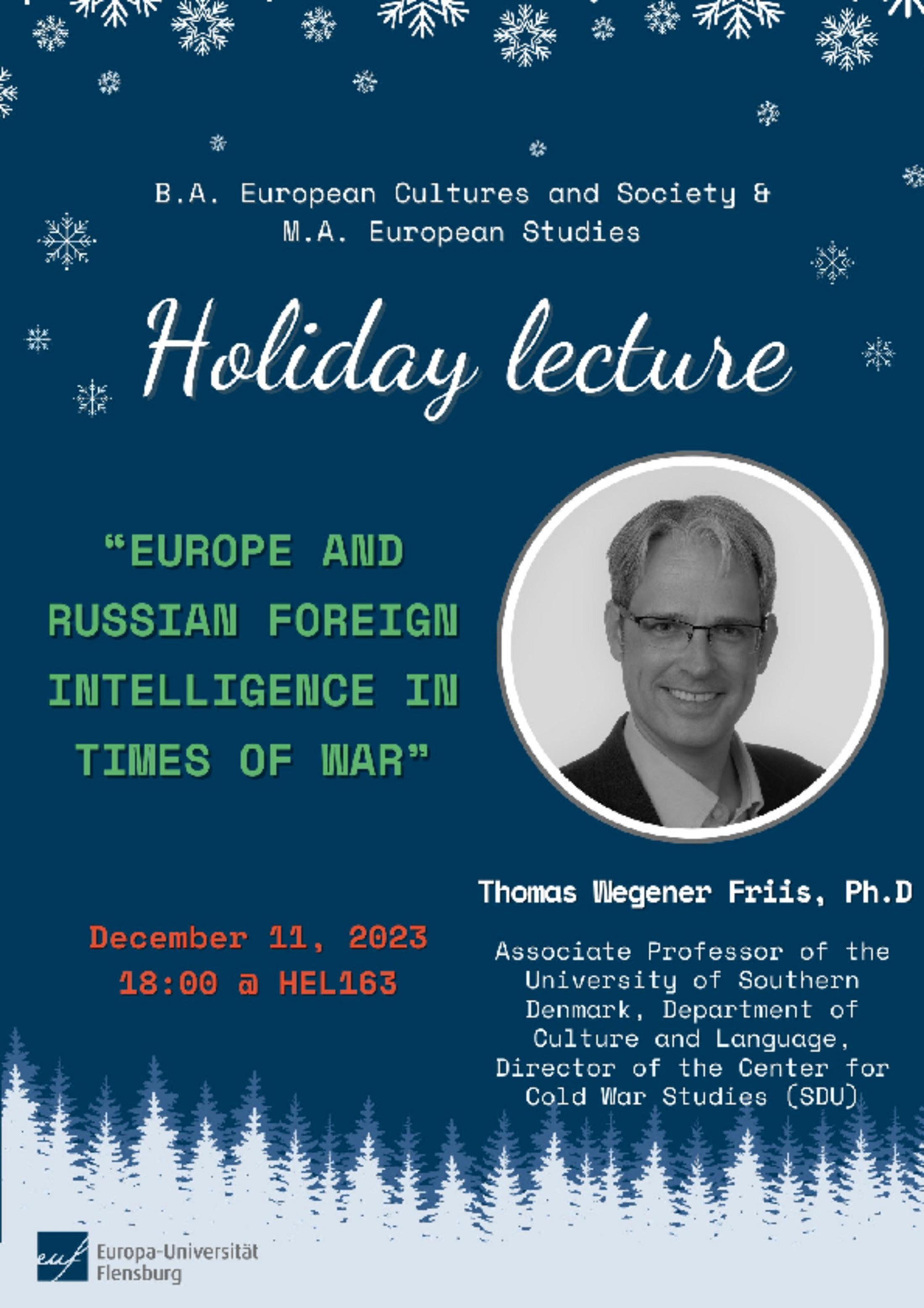 EUCS & EUS Holiday Lecture - “Europe and Russian Foreign Intelligence in times of War” by Thomas Wegener Friis