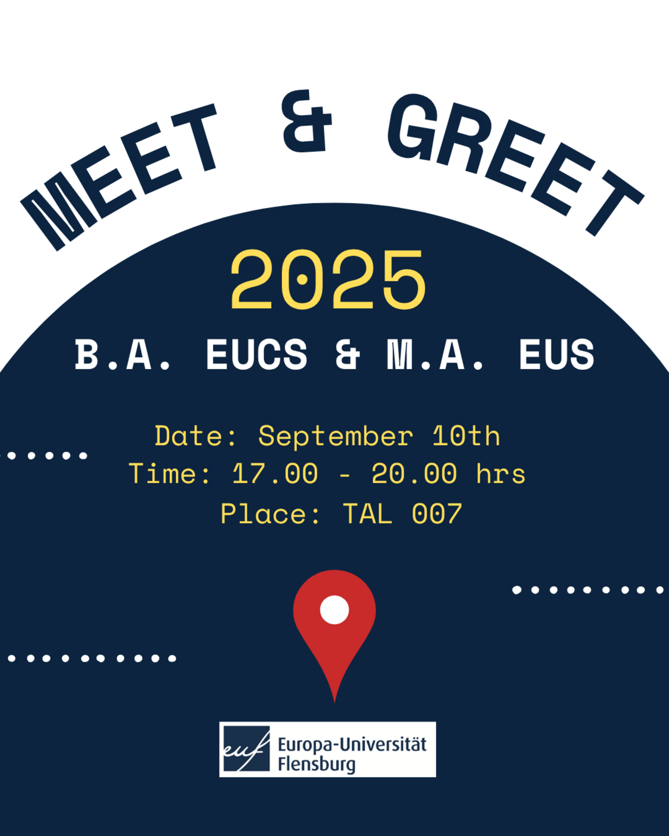 The Master European Studies and the Bachelor European Cultures and Society cordially invite all EUS and EUCS students, lecturers, alumni and friends to join our joint Meet and Greet reception on September 10th, from 17.00-20.00 hrs in TAL 007.