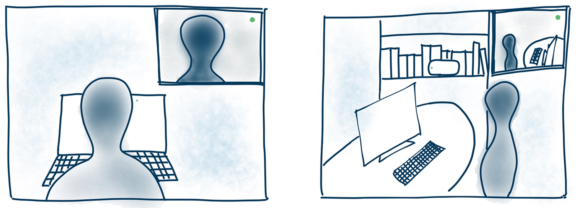 - Im Falle einer Videoaufsicht: Testen Sie vorab die Kameraposition. Sorgen Sie dafür, dass aus Ihrem Videobild nur das Nötigste zu sehen ist.
