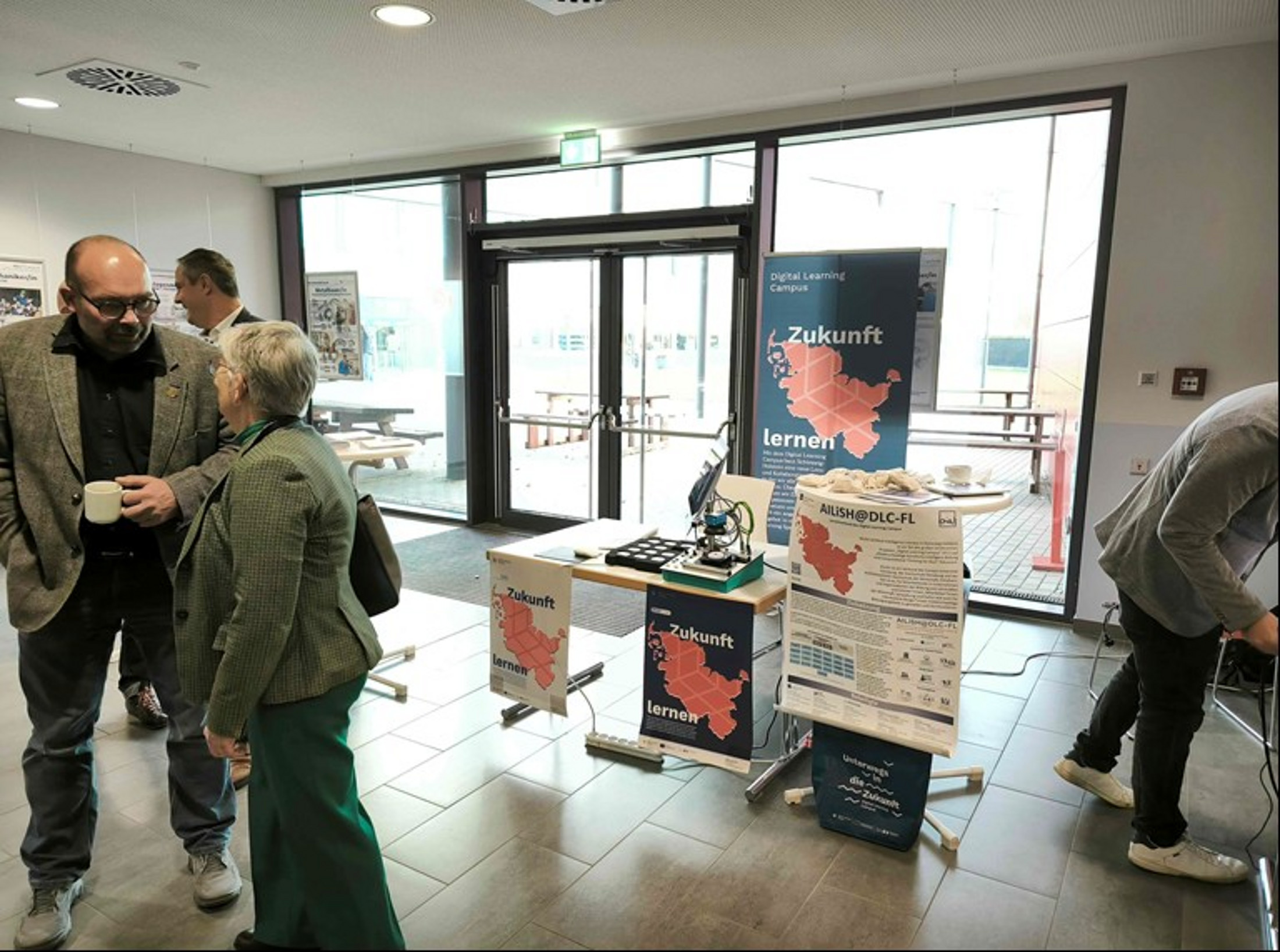 Erstens konnte im Rahmen des Lernortverbundes AILiSH@DLC des Digital Learning Campus (DLC) im Foyer der Veranstaltung das Projekt und ein KI Trainer präsentiert werden.