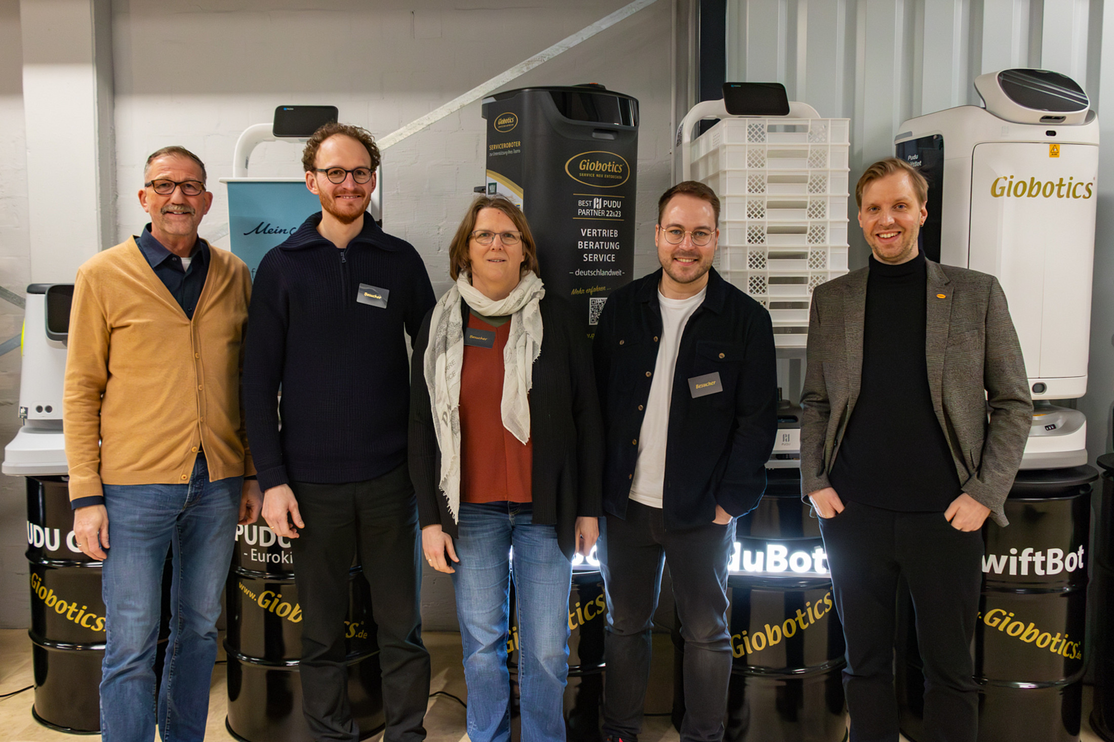Im Rahmen einer Exkursion besuchten Forschende der Europa-Universität Flensburg den Service-Roboter-Vertrieb Giobotics in Kiel. Axel Henke (Assistent der Geschäftsführung, Giobotics) und Philipp Ilsemann (Marketing Manager, Giobotics) führten durch die Lager- und Reparaturlogistik. Beim Gespräch über aktuelle Anwendungsbereiche unterschiedlicher Roboter-Typen im Show-Room stand der Austausch über aktuelle Herausforderungen und Potenziale des Einsatzes von Service-Robotern in der Gastronomie im Mittelpunkt. Die spannenden Einblicke unterstreichen die wachsende Bedeutung der Automatisierung in der Dienstleistungsbranche.