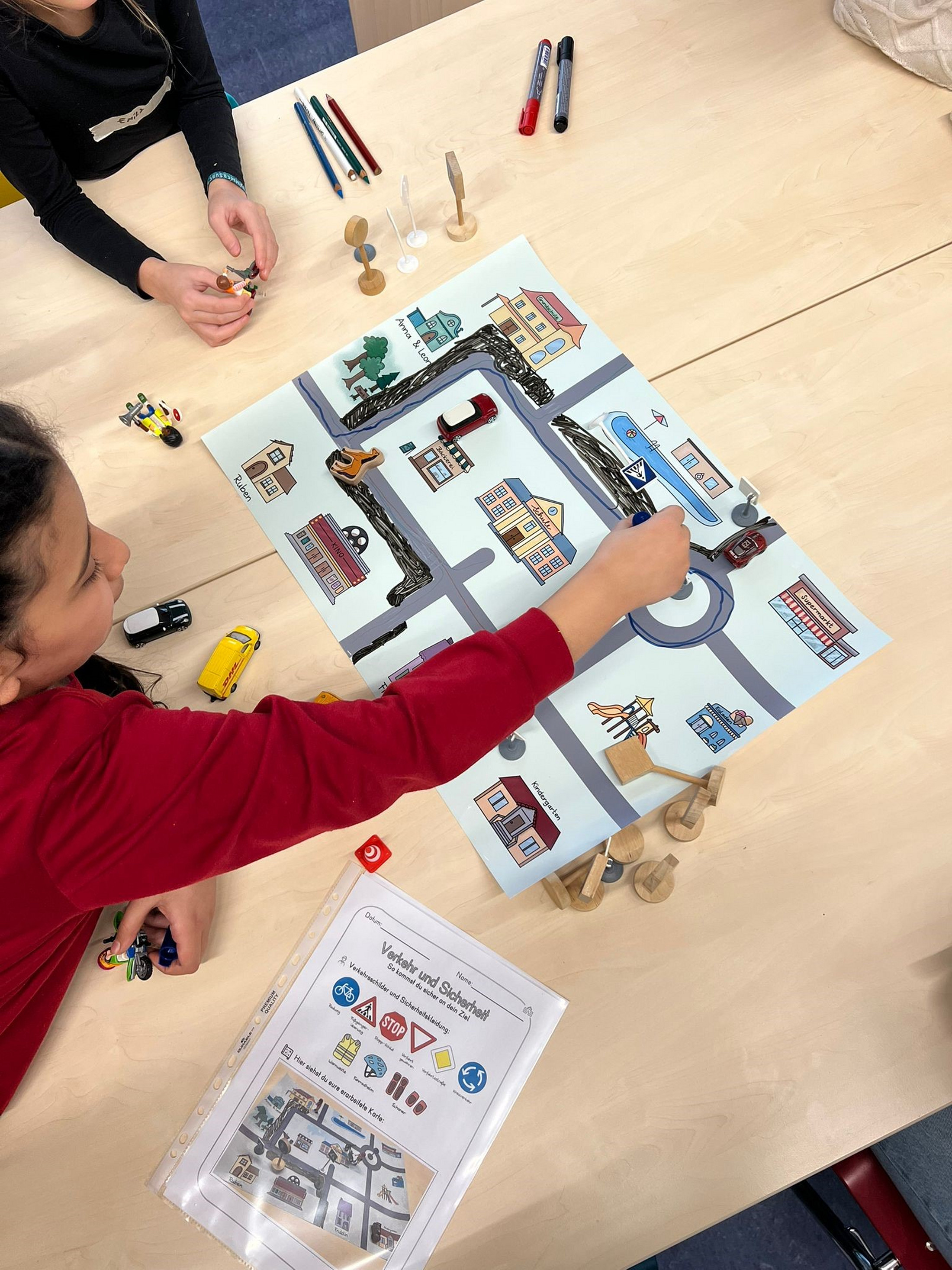 Die Studierenden hatten im Vorfeld zu den jeweiligen Themenbereichen komplette Unterrichtseinheiten entwickelt, die sie nun erfolgreich mit den Schüler:innen der Waldschule erprobten. Zu den Stationen gehörten Themen wie Verkehrssicherheit, Kommunikation früher, Entscheidungen über das Taschengeld, Pausenhofspiele im Wandel der Zeit, Weihnachten in anderen Ländern, Konsumbildung und vieles mehr.