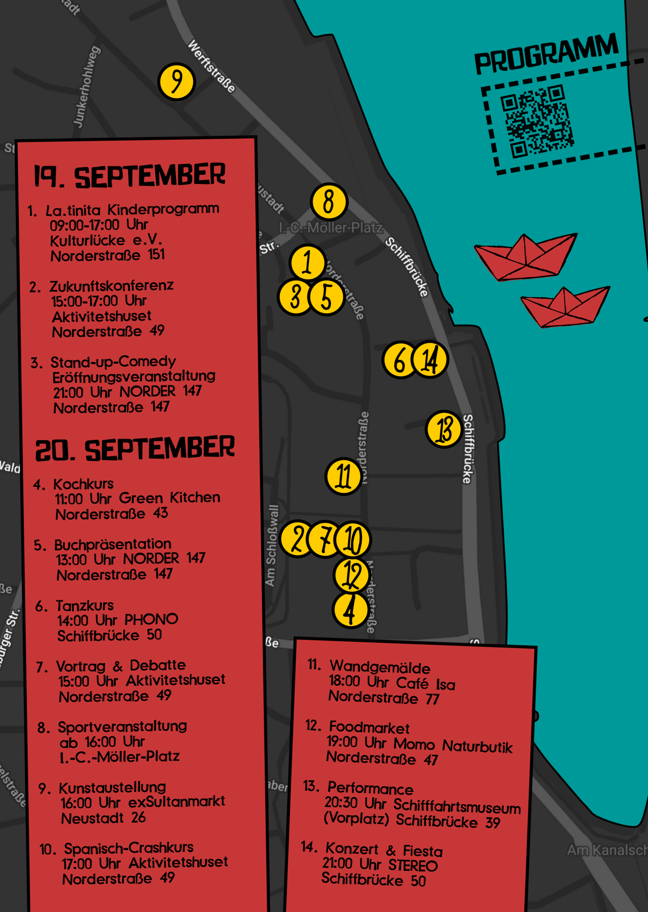 Die La.tina 2024 war einfach fantastisch! Wir haben zwei Tage voller Aktivitäten für alle Geschmäcker und Altersgruppen auf die Beine gestellt mit Gästen aus der Dominikanischen Republik, Brasilien, Peru, Venezuela, El Salvador, Mexiko, Argentinien, Chile, Martinique, Spanien und natürlich auch mit deutschen Künstler:innen. Zwei Tage lang herrschte Freude und lateinamerikanisches Flair in Flensburg und wir haben die wunderschönen Fotos von Kristopher Müller-Greve als Beweis dafür! ¡Hasta la próxima La.tina!