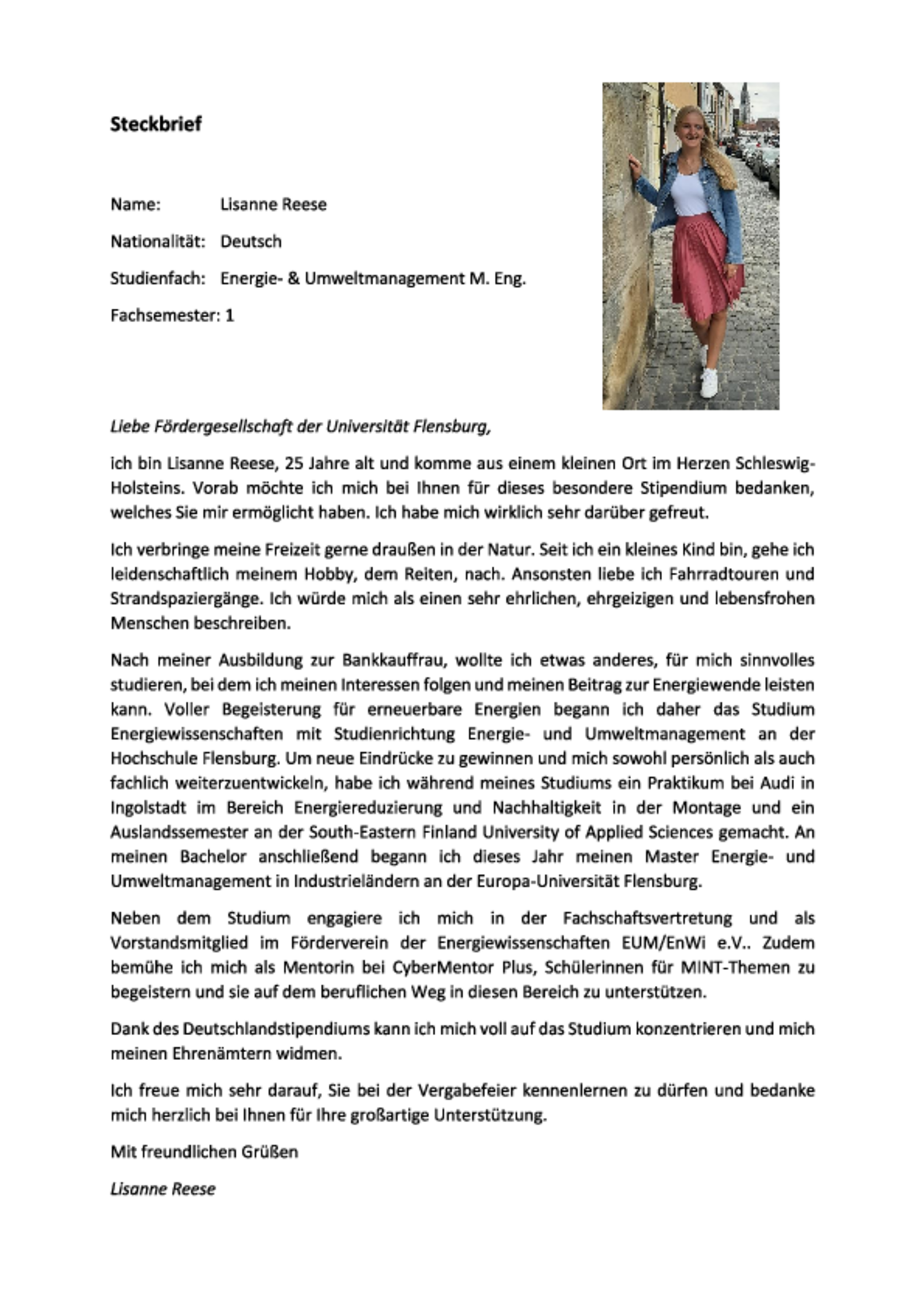 Die Fördergesellschaft freut sich, im Förderjahr 2022/2023 ein Deutschlandstipendium für Lisanne Reese fördern zu können und wünscht viel Erfolg.