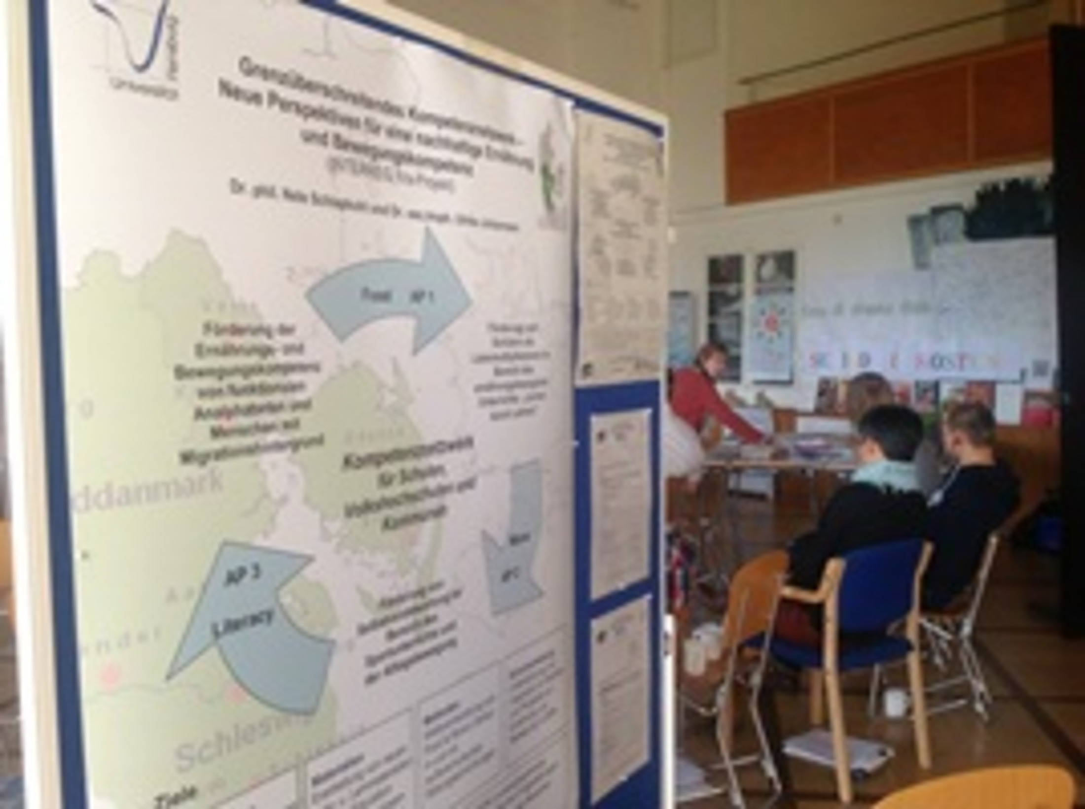 Am 25./26.10.2012 trafen sich zum ersten Workshop Lehrerinnen und Lehrer der vier Leuchtturmschulen in der Internationalen Bildungsstätte Jugendhof Scheersberg. Die Schulvertreter erläuterten zu Beginn des Workshops ihre bereits laufenden Schulprojekte im Bereich Ernährung und Bewegung. Nach einer Vorstellung des INTERREG-Projekts informierten sich die Lehrerinnen und Lehrer an vier Lernstationen anhand von Materialien, selber durchgeführten Praxisübungen und Erfahrungsberichten. So stellte unter anderem der Referent Christian Christiansen, Langemarkskolen in Horsens, den mehrjährigen Veränderungsprozess seiner Schule im Fach Sport vor. Ziel dieses Prozesses ist es, dem Fachbereich Sport bei Schülern, Eltern und Lehrerkollegen einen höheren Stellenwert zu geben und auf das Potenzial von Sport/Bewegung in der Schule und im Alltag hinzuweisen. Zudem stellte Eva Dollerup Mortensen, MEd in Health Promotion and Education der UCSYD, ein Studentenprojekt (1. Semester) vor, welches Sie im Rahmen des "Danks Naturvidenskabsfestival 2012" erfolgreich durchgeführt hatte.