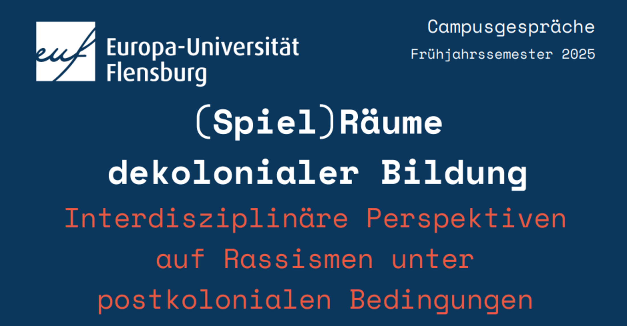 Der zweite Vortrag der Reihe Flensburger Campusgespräche ist heute ein Podiumsgespräch zum Thema "(Spiel-)Räume Dekolonialer und Rassismuskritischer Bildung"