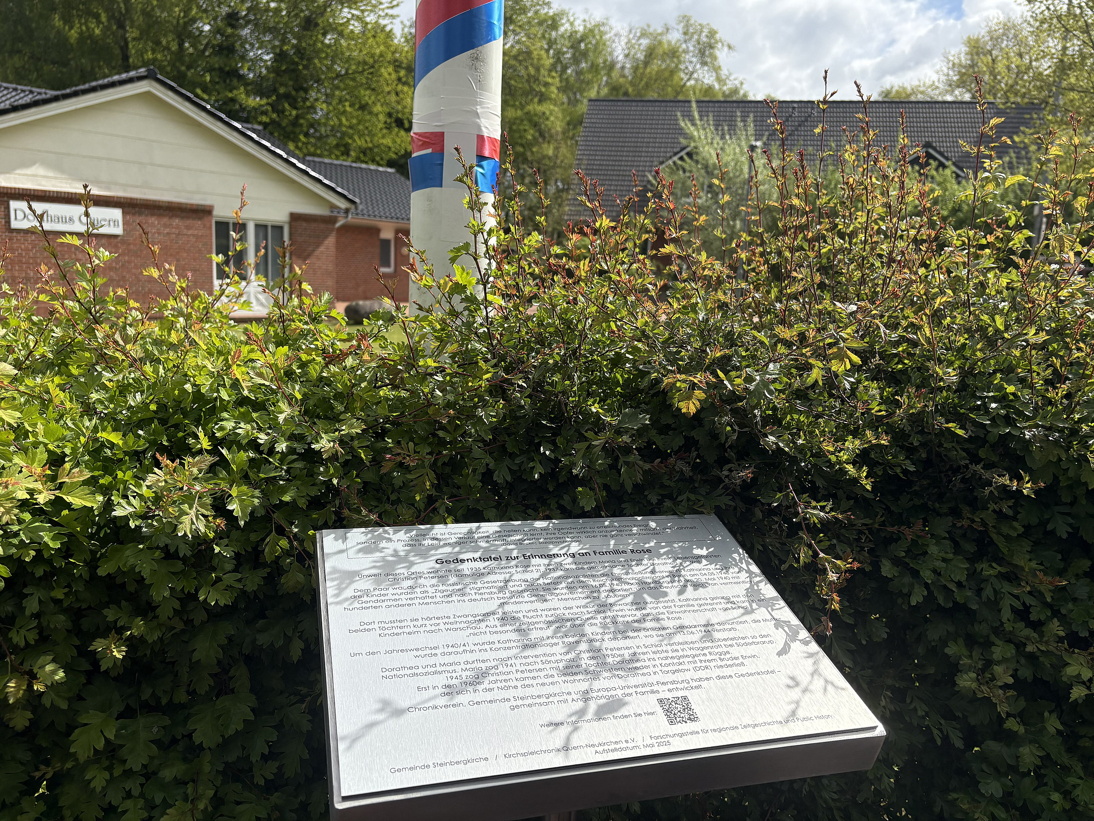 Am 04.05.2025 wurde die Gedenktafel mit der Geschichte der Familie Rose im Rahmen eines feierlichen Gedenkens der Gemeinde Steinbergkirche enthüllt. Dem Tag, an dem die Polizei vor 85 Jahren Katharina Rose mit ihren drei Kindern zunächst im Dorf Schiol abholte und nach Flensburg brachte. Von dort wurde die Familie in das deutsch besetzte Generalgouvernement in Polen deportiert. Als das Zwangsarbeitslager, in das Katharina Rose mit ihren Kindern deportiert wurde, 1940 aufgelöst wurde, gelang es der Familie nach Schiol zurückzukehren. Sie wurden jedoch von unbekannten Personen denunziert, Katharina Rose wurde ins KZ Ravensbrück gebracht, wo sie 1944 starb. Während der Sohn in Warschau verloren ging, durften die beiden Töchter beim Vater eines der Mädchen in Schiol bleiben, erst in den 1960er Jahren kamen die Kinder von Katharina Rose wieder miteinander in Kontakt. In der Ortsmitte von Quern erinnert nun eine Gedenktafel an die Familie und ihre Geschichte.