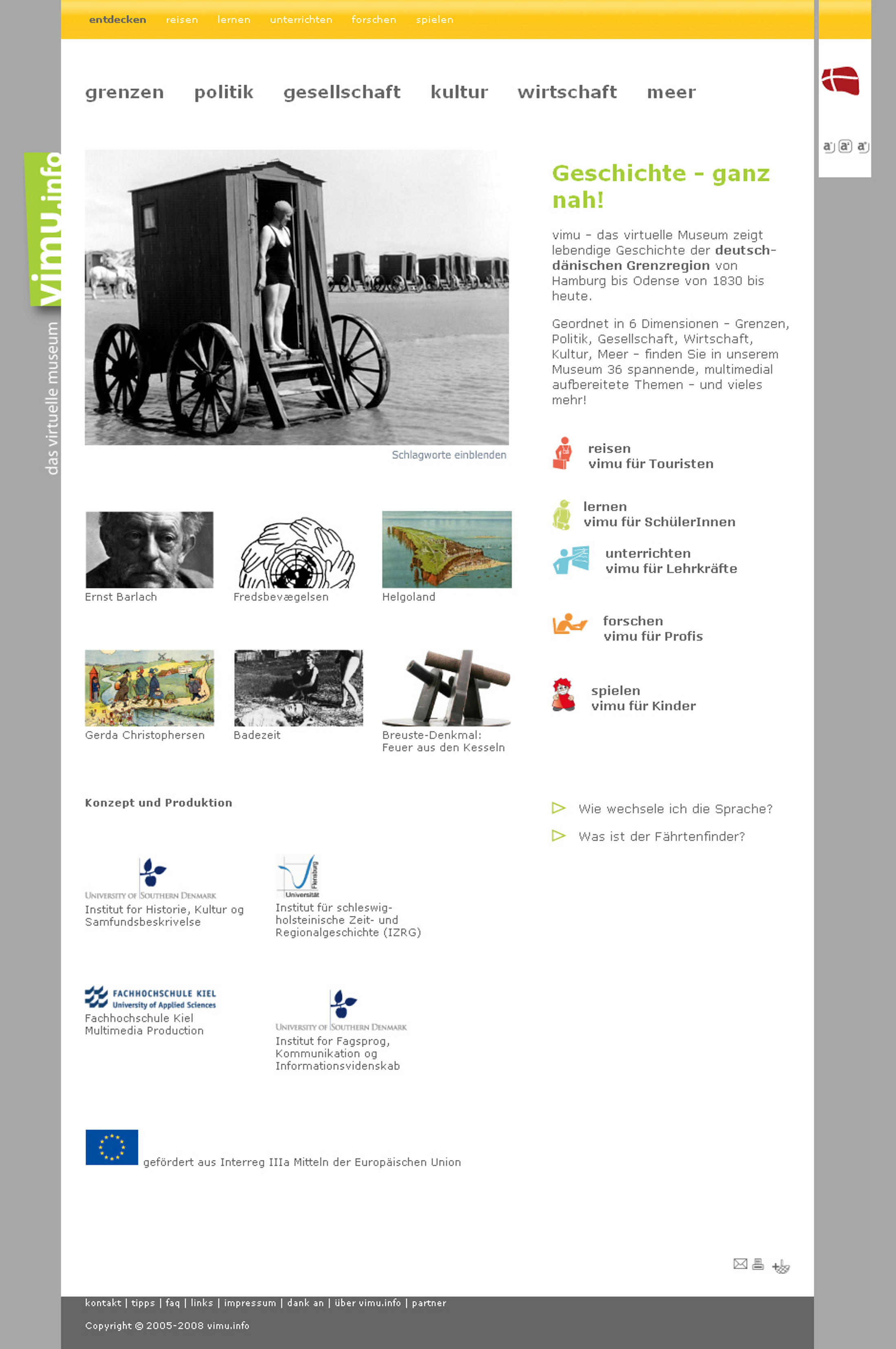 Die innovative Internetseite entstand in Zusammenarbeit von Prof. Dr. Uwe Danker und Astrid Schwabe mit dem Zentrum für Multimedia der Fachhochschule Kiel (Prof. Dr. Bernd Vesper), dem Institut for Historie, Kultur og Samfundsbeskrivelse der Syddansk Universitet, Odense (Prof. Dr. Martin Rheinreimer), und dem Institut for Fagsprog, Kommunikation og Informationsvidenskab Syddansk Universitet, Kolding (Prof. Dr. Klaus Robering). Die Teilbeiträge des IZRG betrafen vor allem die konzeptionellen und geschichtsdidaktischen sowie spezielle geschichtswissenschaftliche Arbeiten. Auch bei diesem Projekt arbeiteten zusätzlich zu der Wissenschaftlerin und den Wissenschaftlern im Hause zahlreiche junge Studierende der Universität Flensburg mit.