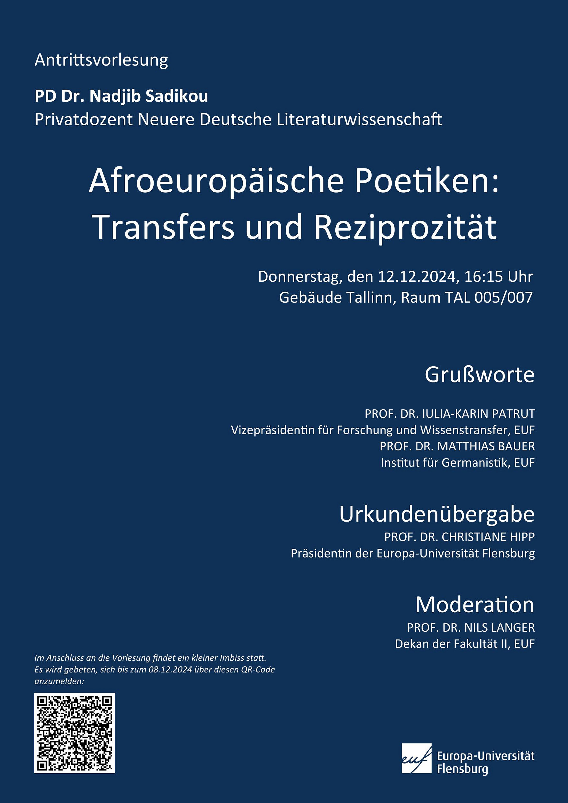 Antrittsvorlesung von Nadjib Sadikou: Afroeuropäische Poetiken - Transfers und Reziprozität