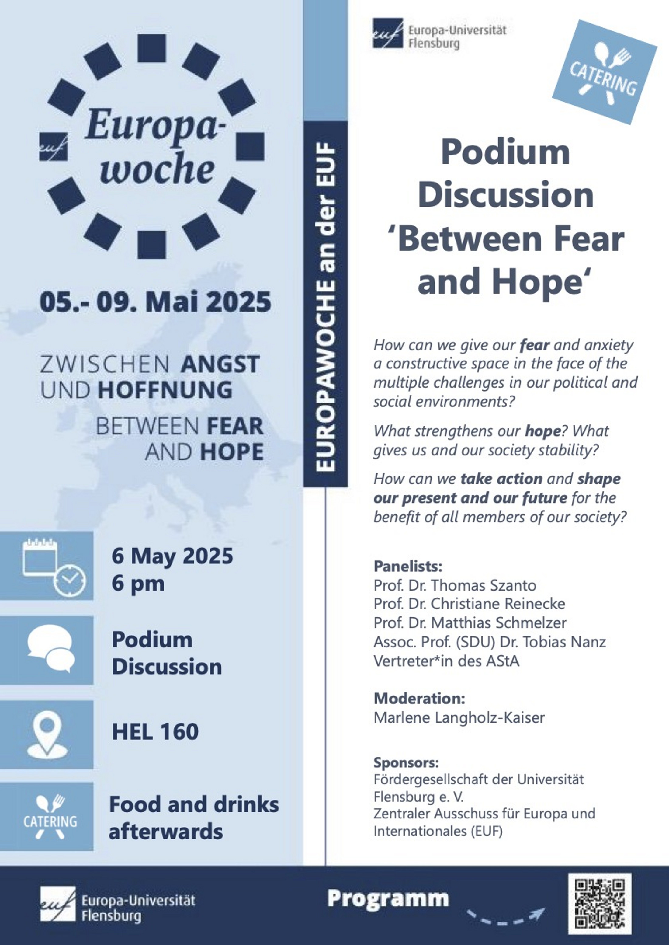 The podium discussion is part of the program of the EUF during the Europa-Woche, which takes places from 05th to 9th Mai 2025. See the poster for additional information.