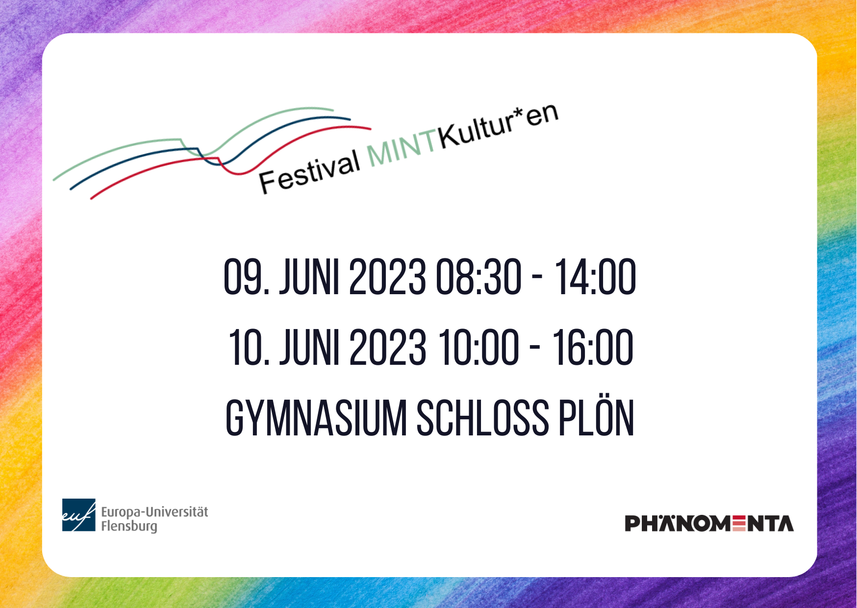 Die Europa Universität Flensburg und die Phänomenta Flensburg richten seit 2022 im Rahmen des vom BMBF geförderten Clusters Science@Seas gemeinsam das Festival MINTKultur*en aus. Mit den Festivals, die im ganzen Land stattfinden, soll Kindern, Jugendlichen und Erwachsenen ein Zugang zur Faszination für naturwissenschaftlich-technische Phänomene ermöglicht werden. Die Festivals werden in unterhaltsamen und vielfältigen Formaten auf die Relevanz von MINT für die Gesellschaft, sowie das Land eingehen. Die Schnittstelle zur Kultur bietet dabei einen Zugang, der es auch Menschen ohne gegenwärtige MINT-Affinität erlaubt, Begeisterung zu entwickeln.