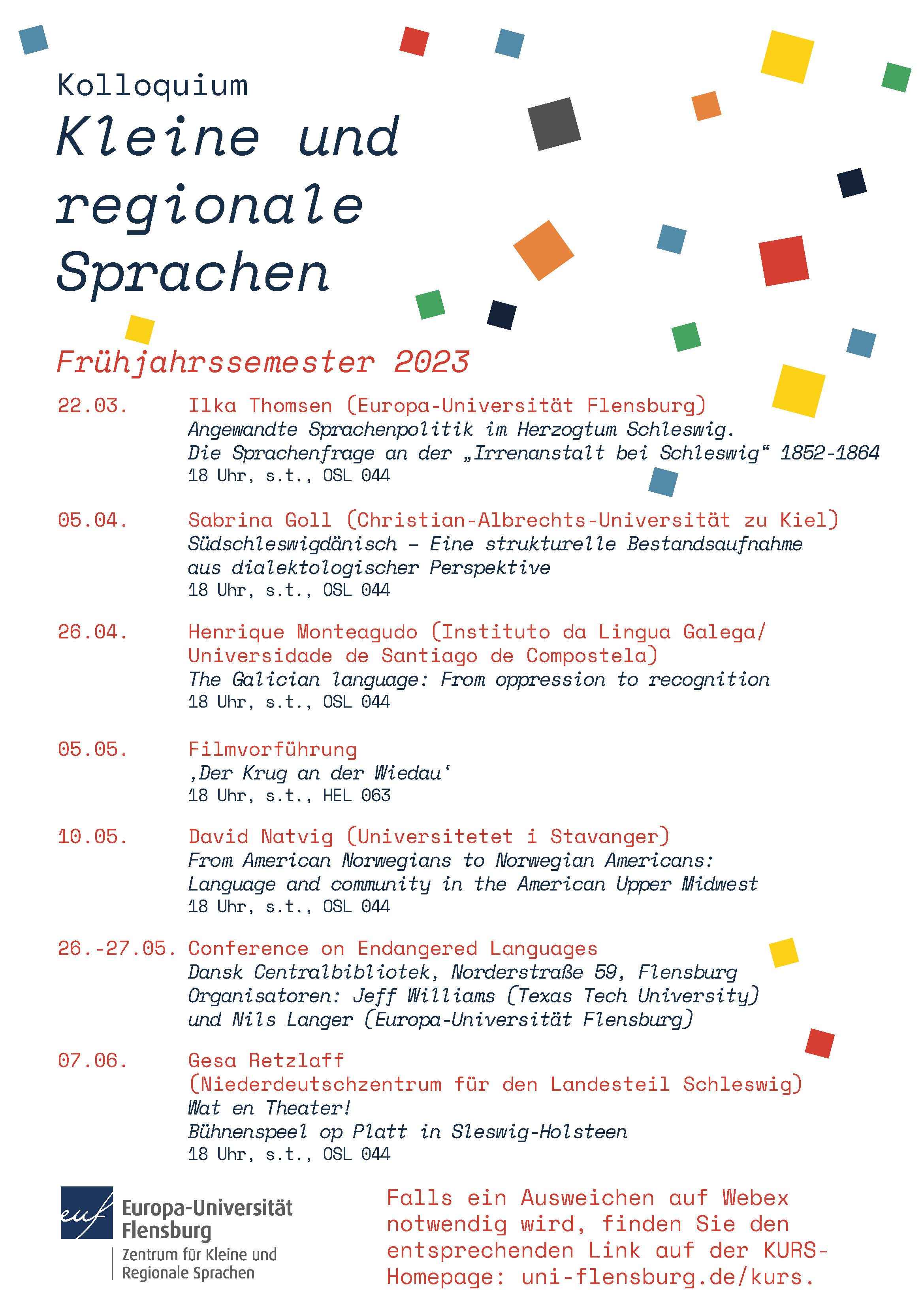 Das Kolloquium Kleine und regionale Sprachen (KURS) lädt heute zu dem Vortrag "Südschleswigdänisch – Eine strukturelle Bestandsaufnahme aus dialektologischer Perspektive" von Sabrina Goll, Christian-Albrechts-Universität zu Kiel ein.