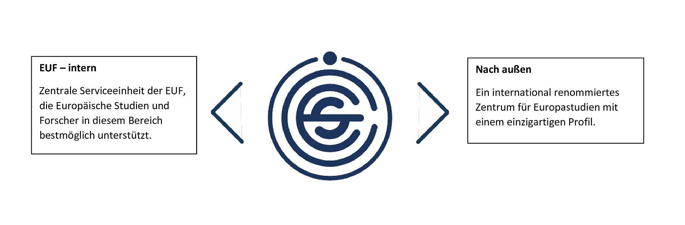 Das ICES möchte seine Rolle als renommiertes Zentrum für exzellente Europastudien mit der bestmöglichen Unterstützung für alle Wissenschaftler verbinden, die sich an der EUF mit Europaforschung beschäftigen (siehe Abbildung 1). Um dies zu erreichen, konzentriert sich das ICES auf drei zentrale Tätigkeitsbereiche: