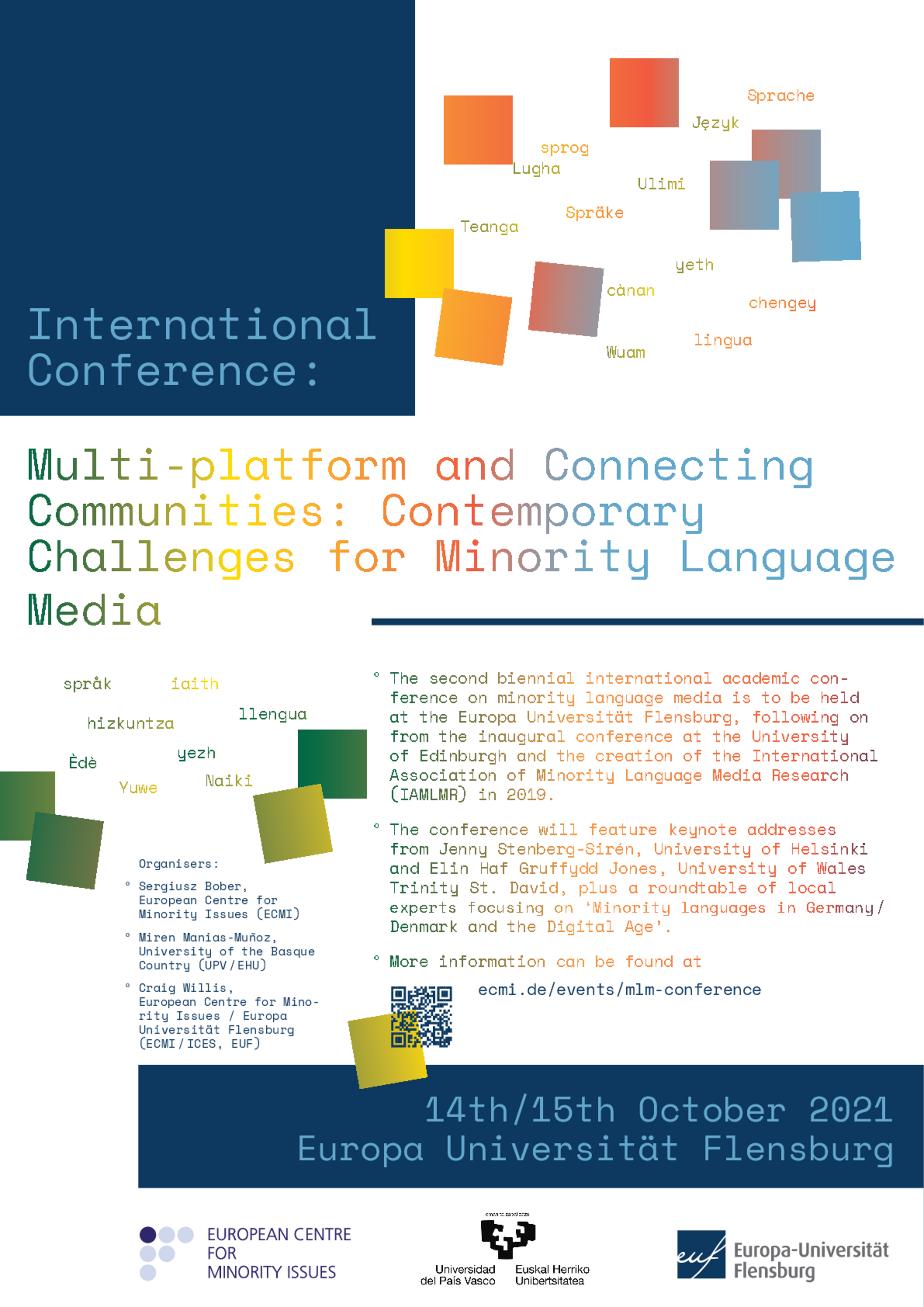 The guiding idea behind the second biennial conference on minority language media is to bring together academics and professionals from this field, as well as facilitating intensive exchange of research and practical experiences. This event aims to build upon the expertise of the International Association of Minority Language Media Research (IAMLMR) established in Edinburgh in 2019.