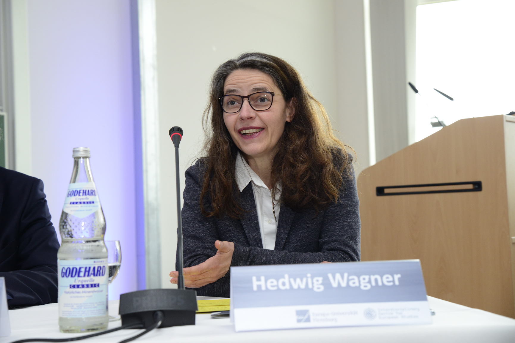 "Die europäische Integration ist ein vielschichtiger Prozess, der Gesellschaft, Politik und Kultur fortlaufend verändert. Das ICES hat sich zum Ziel gesetzt, mit den unterschiedlichen Perspektiven und Methoden der Sozial- und Geisteswissenschaften diese Prozesse zu erkennen und zu erforschen", sagte die Direktorin des Zentrums, Prof. Dr. Monika Eigmüller, Europasoziologin und Vizepräsidentin für Europa und Internationales an der EUF. Zwar mute die Eröffnung eines Forschungszentrums, das sich zentral mit Fragen der europäischen Integration in Politik, Ökonomie, Kultur und Gesellschaft auseinandersetzt, angesichts der gegenwärtigen Desintegrationsbewegungen geradezu anachronistisch an. Doch: "So düster die Zukunft des Projekts Europas gar nicht", prognostizierte Eigmüller und verwies auf jüngere Studie, nach denen die Identifikation mit der EU nach wie vor hoch sei und auch das Vertrauen in die EU-Institutionen wieder steige.
